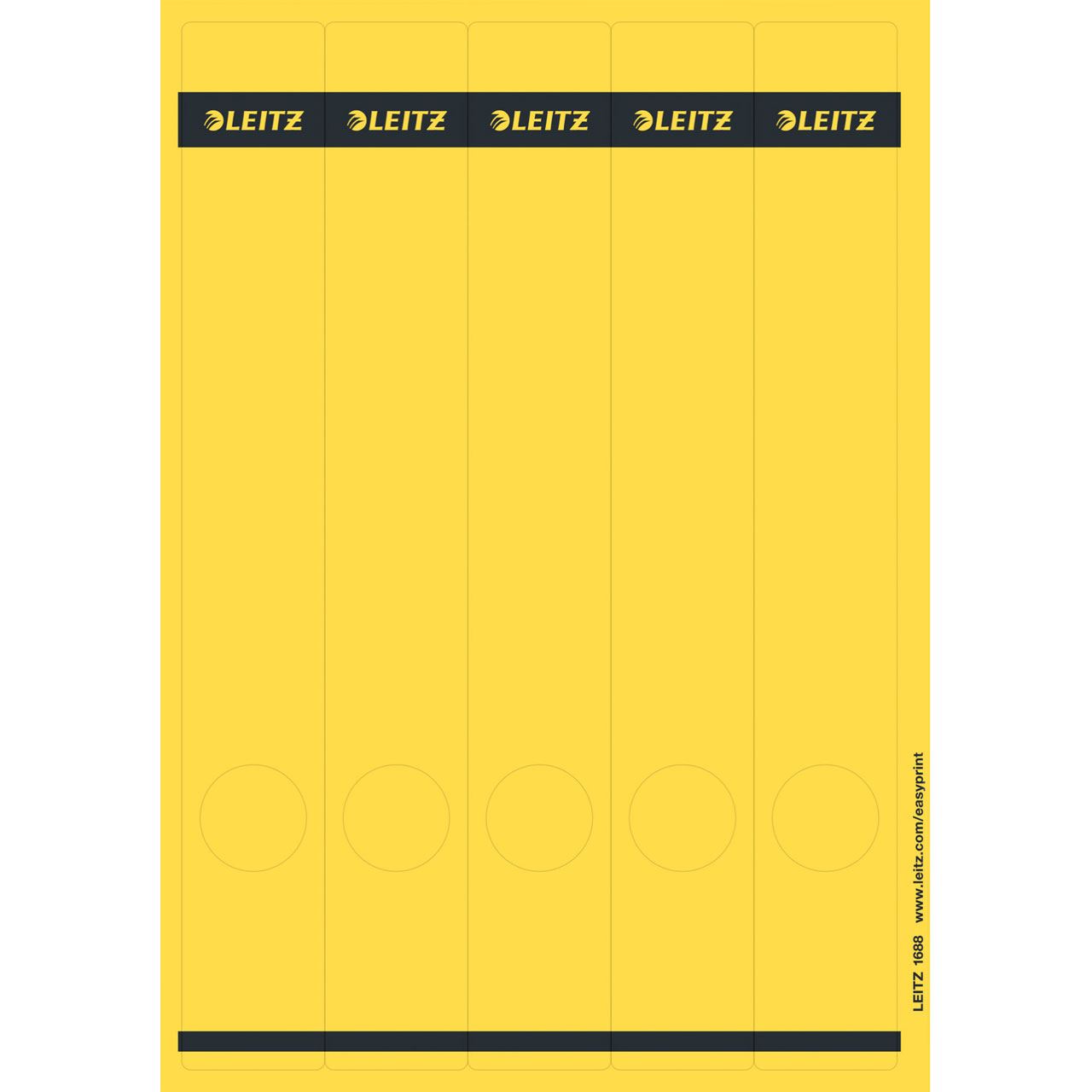 Leitz PC-beschriftbare Rückenschilder für Qualitäts-Ordner 180°. Produktfarbe: Gelb, Form: Rechteck, Empfohlene Nutzung: Ringordner. Breite: 39 mm, Höhe: 285 mm. Aufkleber pro Satz: 125 Stück(e)