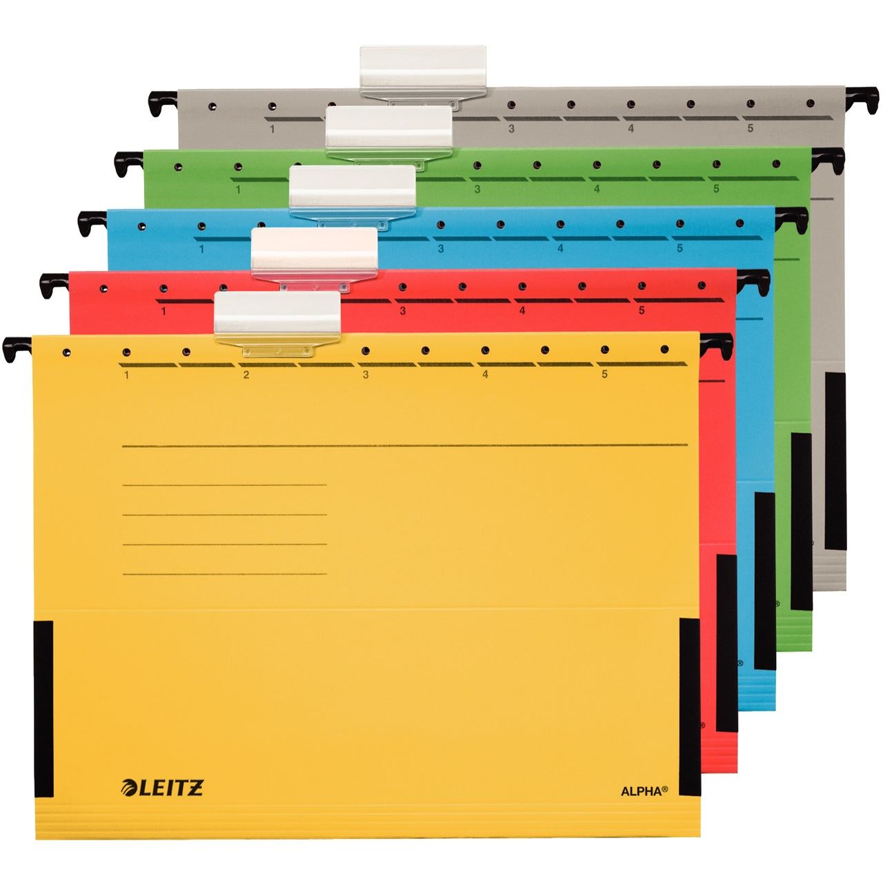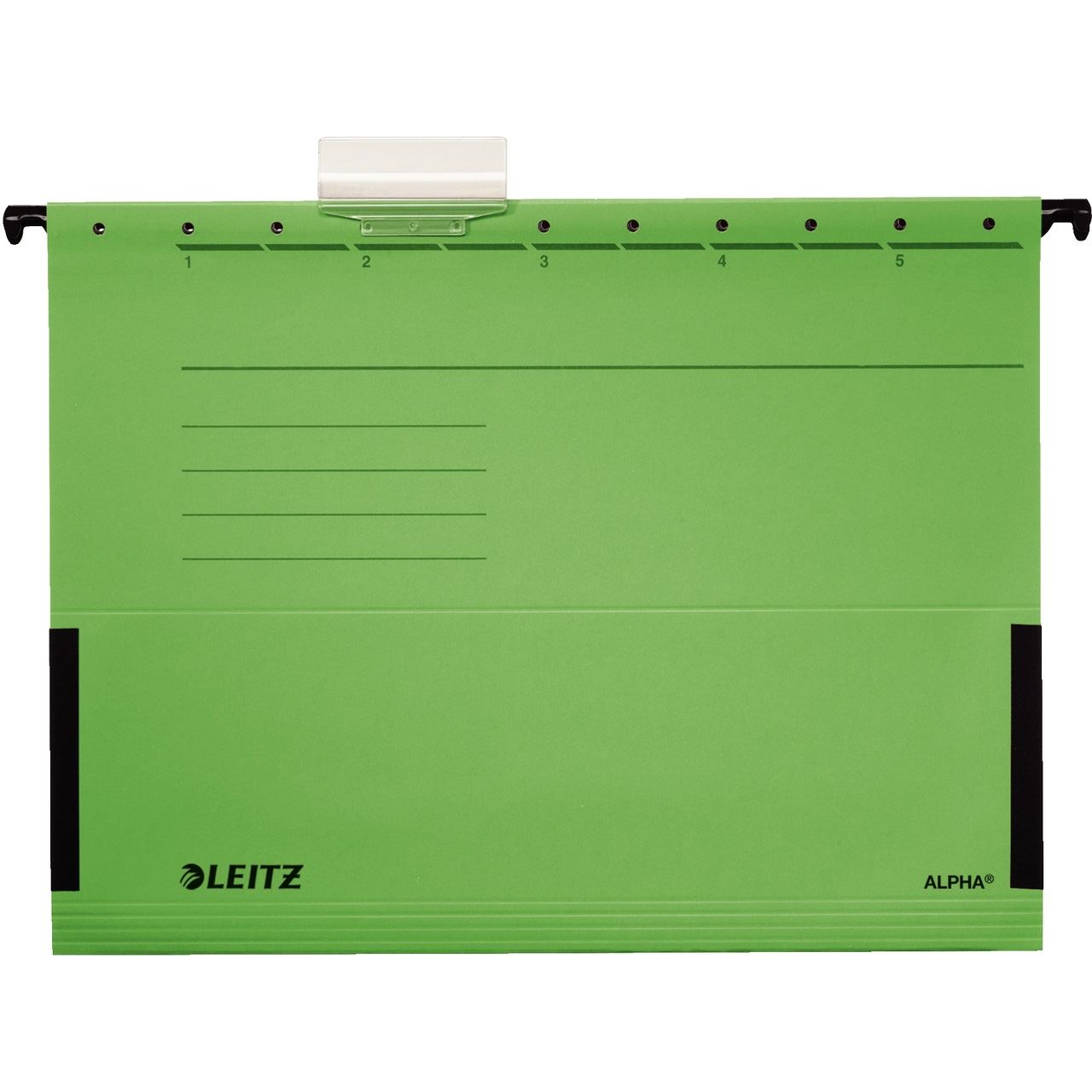 Leitz Alpha. Format: A4, Material: Karton, Metall, Produktfarbe: Grün. Breite: 348 mm, Höhe: 260 mm, Gewicht: 80 g. Menge pro Packung: 5 Stück(e)