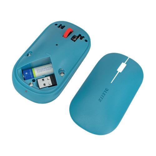 Leitz Cosy. Formfaktor: Beidhändig. Geräteschnittstelle: RF Wireless + Bluetooth, Bewegung Auflösung: 4000 DPI, Tastentyp: Gedrückte Tasten, Knopfanzahl: 3, Scroll Typ: Rad. Energiequelle: Batterien. arbeitet auf jeder Oberfläche. Produktfarbe: Blau