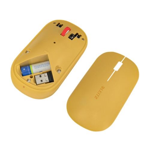 Leitz Cosy. Formfaktor: Beidhändig. Geräteschnittstelle: RF Wireless + Bluetooth, Bewegung Auflösung: 4000 DPI, Tastentyp: Gedrückte Tasten, Knopfanzahl: 3, Scroll Typ: Rad. Energiequelle: Batterien. arbeitet auf jeder Oberfläche. Produktfarbe: Orange