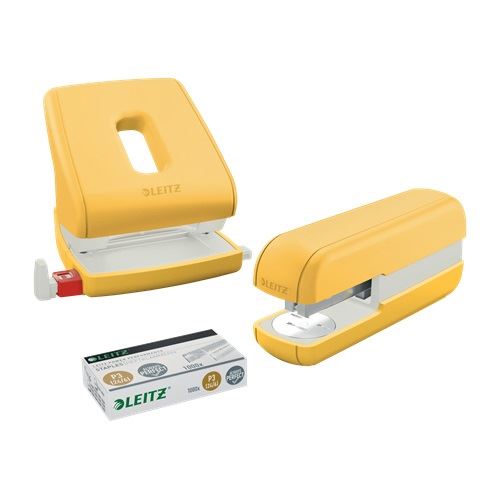 Fühlen Sie sich mit dem Cosy Sortiment von Leitz wie zu Hause, wo auch immer Sie sind. Mit seinem minimalistischen Design und den einladenden matten Farben können Sie Ihrem Arbeitsbereich Stil und Farbe verleihen. Das Cosy Heftgerät ist robust und zuverlässig und heftet bis zu 30 Blatt. Die patentierte Direct Impact Technologie garaniert eine stets perfekte Heftung. Dieses hochwertige Heftgerät ist die perfekte Ergänzung für Ihr Zuhause oder Büro, damit Sie den ganzen Tag entspannt und produktiv bleiben.