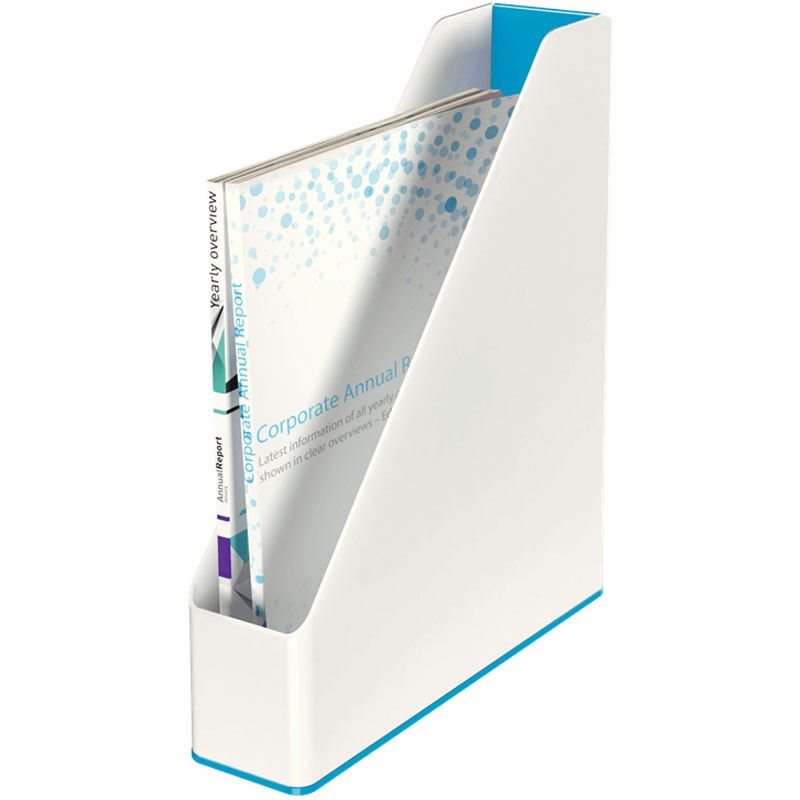 Auffälliger Leitz Zeitschriftenhalter in Premium-Qualität mit modernem zweifarbigem WOW Effekt in Hochglanz. Der Design-Stehsammler passt perfekt zu allen anderen Produkten der Leitz WOW Serie. Modernes, zeitgemäßes Design zu Hause und im Büro.