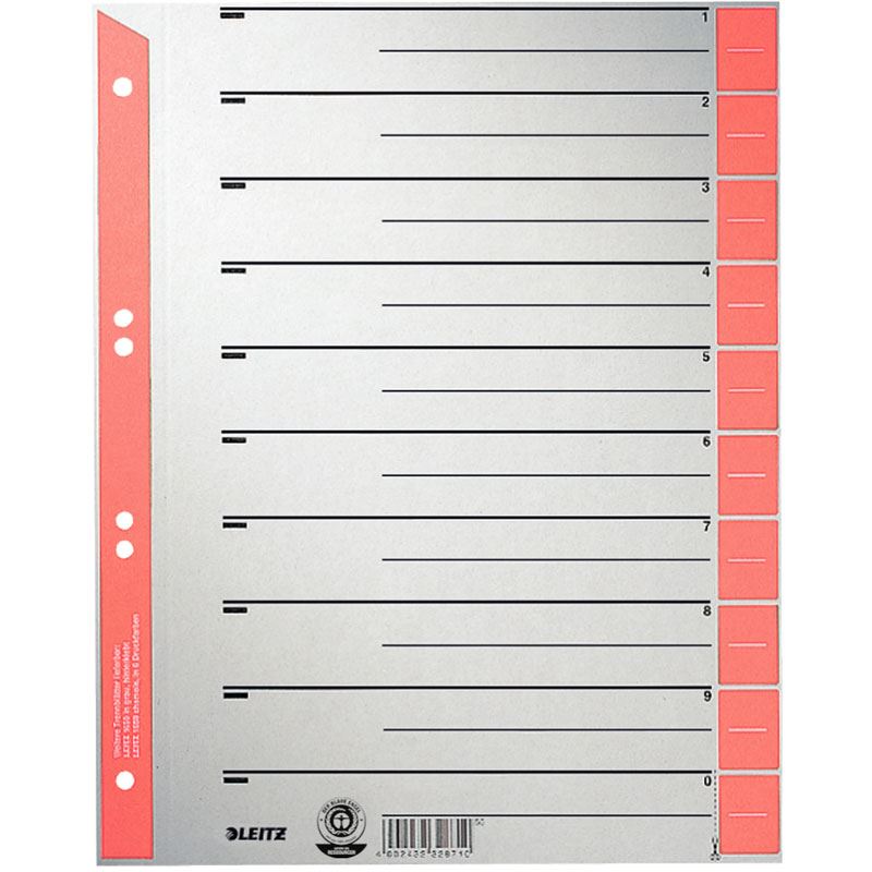 Leitz Trennblatt, farbig bedruckt. Typ: Numerischer Registerindex, Material: Karton, Produktfarbe: Grau, Rot. Breite: 240 mm, Länge (mm): 300 mm, Höhe: 1 mm