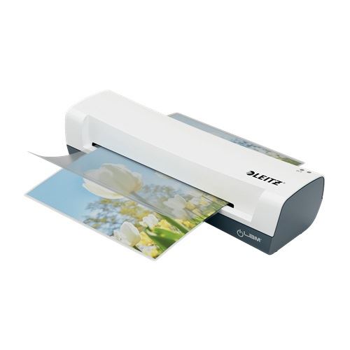 Das leichte und kompakte Leitz iLAM Home A4 Laminiergerät bringt Stil in Ihr Zuhause. Das Laminiergerät verfügt über einfache Bedienelemente und ist in nur drei Minuten einsatzbereit. Sie können Laminierfolien mit bis zu 125 Mikron laminieren, um Ihre Dokumente mit einer perfekt glatten Oberfläche zu schützen. Dieses Laminiergerät mit Laminierfolien bietet die Flexibilität, Dokumente von Visitenkarten- bis zu A4-Größe zu laminieren. Starterpaket mit 5x A4 UDT-Laminierfolien (80 Mikron) enthalten.