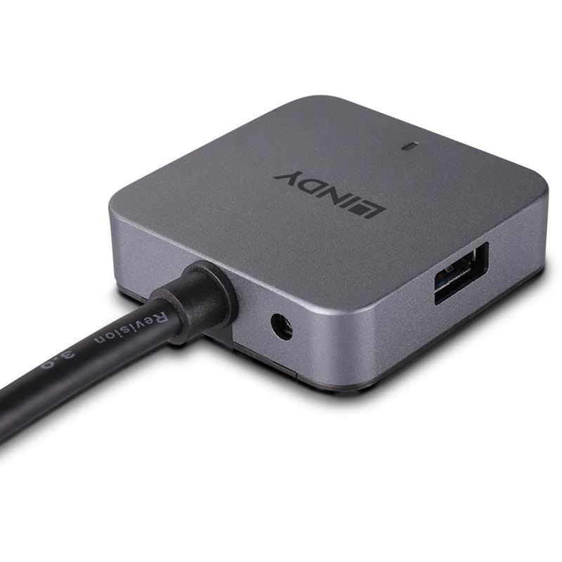Lindy 43388. Hostschnittstelle: USB 3.2 Gen 1 (3.1 Gen 1) Type-A, Hub-Schnittstellen: USB 3.2 Gen 1 (3.1 Gen 1) Type-A, USB 3.2 Gen 1 (3.1 Gen 1) Type-C. Datenübertragungsrate: 5000 Mbit/s, Produktfarbe: Schwarz, Grau, Gehäusematerial: Aluminium, Kunststoff. Eingangsspannung: 5 V, Eingangsstrom: 0.9 A. Breite: 52,5 mm, Tiefe: 52,5 mm, Höhe: 14 mm. Menge pro Packung: 1 Stück(e), Verpackungsbreite: 236 mm, Verpackungstiefe: 255 mm
