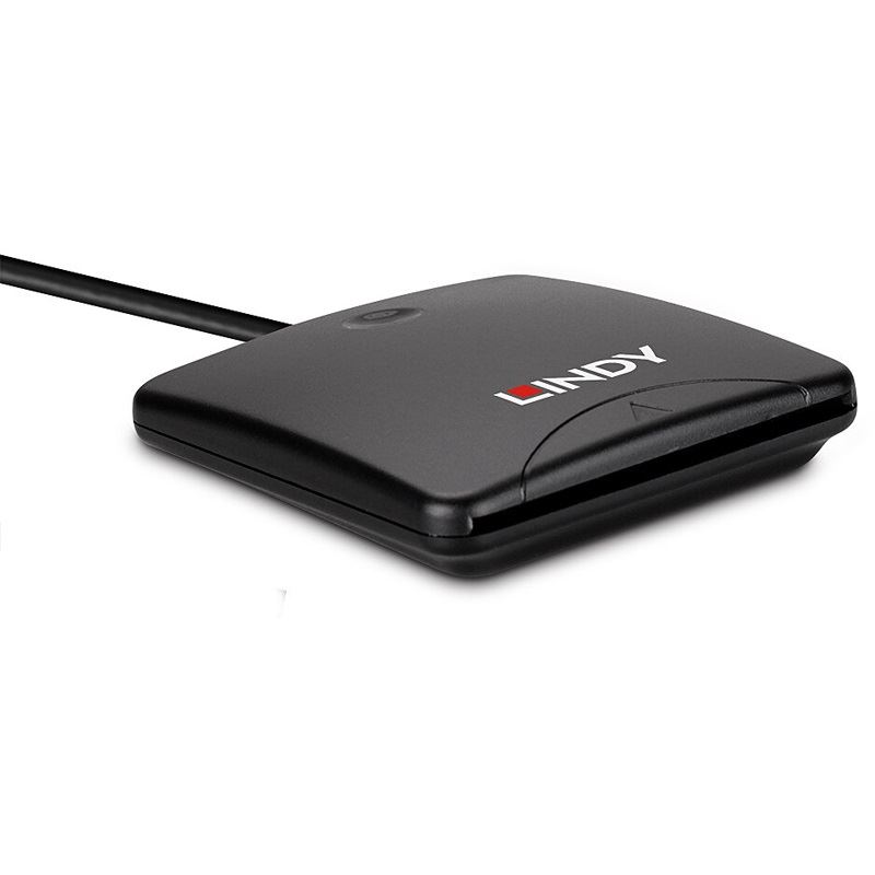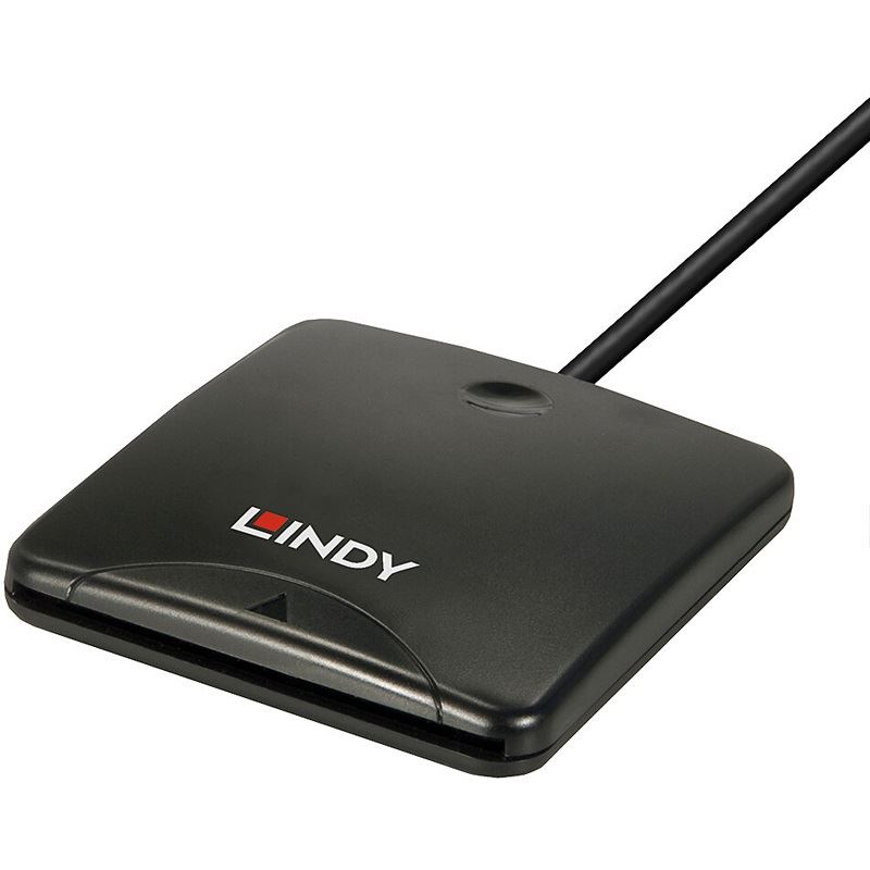 Lindy USB 2.0 Chipkartenleser. Schnittstelle: USB, Produktfarbe: Schwarz, Kabellänge: 1,2 m. Arbeitsspannung: 5 V. Breite: 69 mm, Tiefe: 62 mm, Höhe: 16 mm. Verpackungsbreite: 128 mm, Verpackungstiefe: 98 mm, Verpackungshöhe: 28 mm