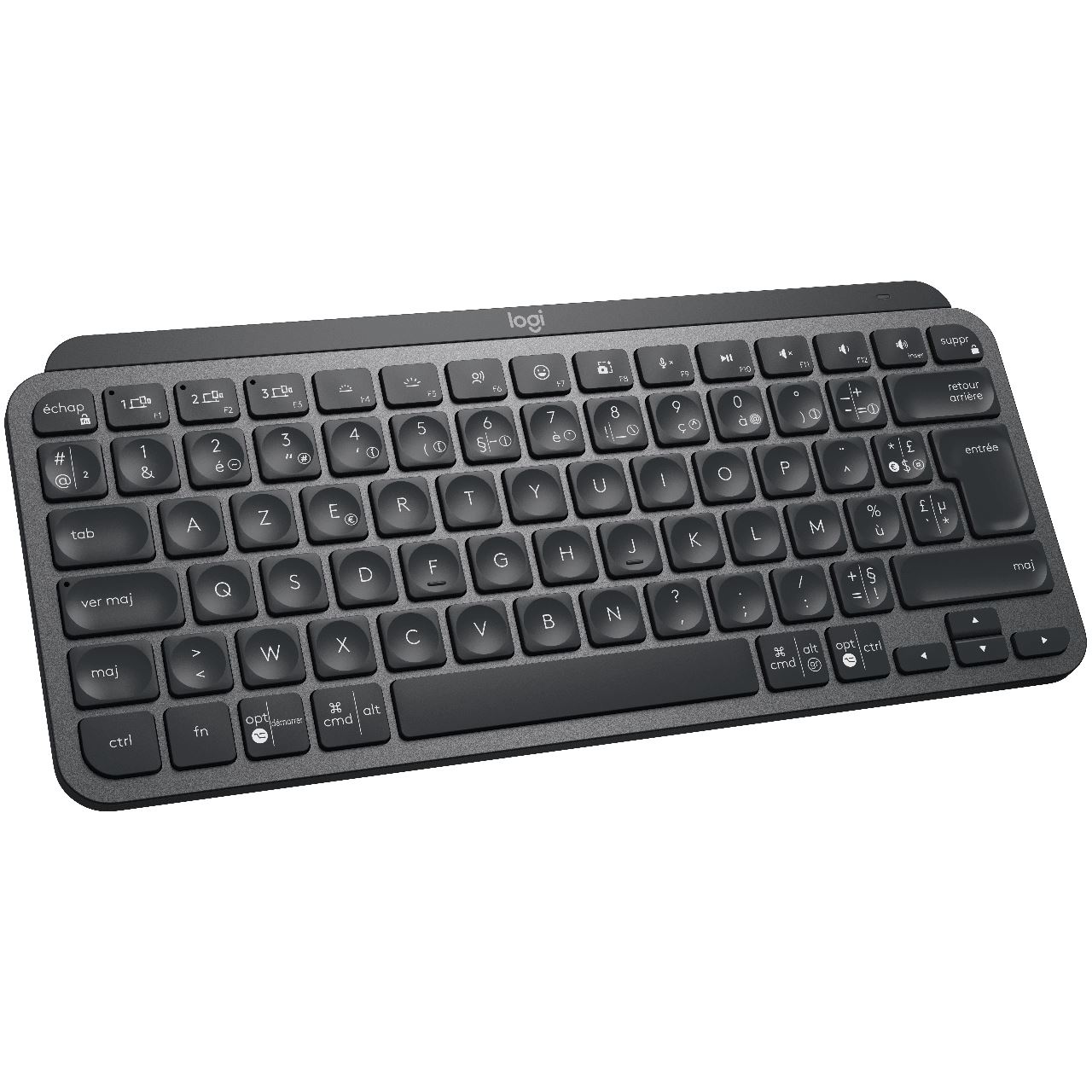 Logitech Master MX Keys Mini. Tastatur Formfaktor: Mini. Tastatur-Stil: Gerade. Übertragungstechnik: Kabellos, Geräteschnittstelle: RF Wireless + Bluetooth, Tastaturaufbau: AZERTY. Typ der Hintergrundbeleuchtung: LED. Empfohlene Nutzung: Büro. Produktfarbe: Graphit