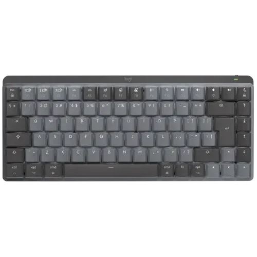 Logitech Master MX Mechanical Mini for Mac. Tastatur Formfaktor: Tenkeyless (80 - 87 %). Tastatur-Stil: Gerade. Übertragungstechnik: Kabellos, Geräteschnittstelle: RF Wireless + Bluetooth, Tastatur-Switch: Mechanischer Switch, Tastaturaufbau: QWERTY. Typ der Hintergrundbeleuchtung: LED. Kabellänge: 1 m. Empfohlene Nutzung: Büro. Produktfarbe: Grau