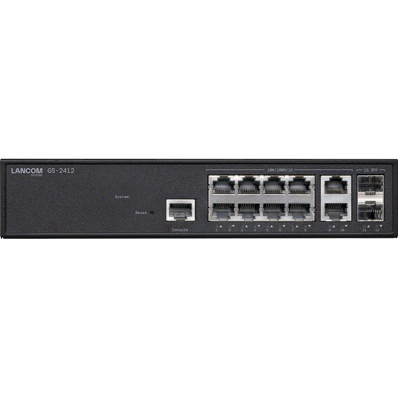 Der LANCOM GS-2412 ist ausgestattet mit 10x 1 Gigabit Ethernet-Ports und 2x SFP-Ports. Mit einem Datendurchsatz von 24 GBit/s auf der Backplane bietet er volle Performance auch bei hoher Auslastung. Damit bildet der Switch die leistungsstarke Grundlage für moderne Netzwerkinfrastrukturen in Small- und Home-Offices.