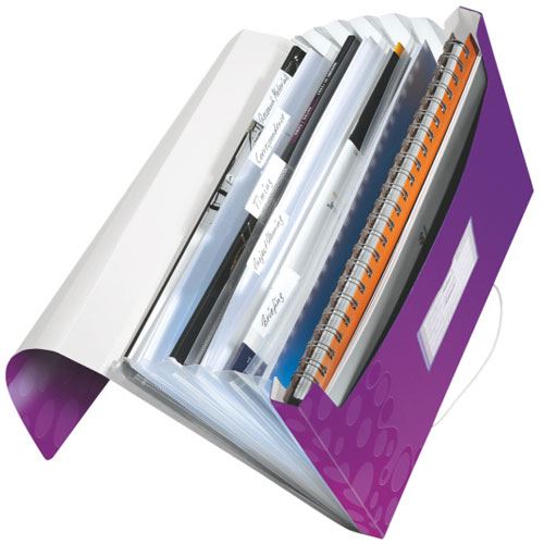 5 Fächer mit Beschriftungstaben inkl. Beschriftungsschild- chen, mit zusätzlichem Ablagefach, Visitenkartentasche, Verschluss mit Gummizug, laminierte Oberfläche, Oberflächen- mit 3D-Prägung, (B)245 x (T)38 x (H)330 mm (4589-00-62/4589-62)