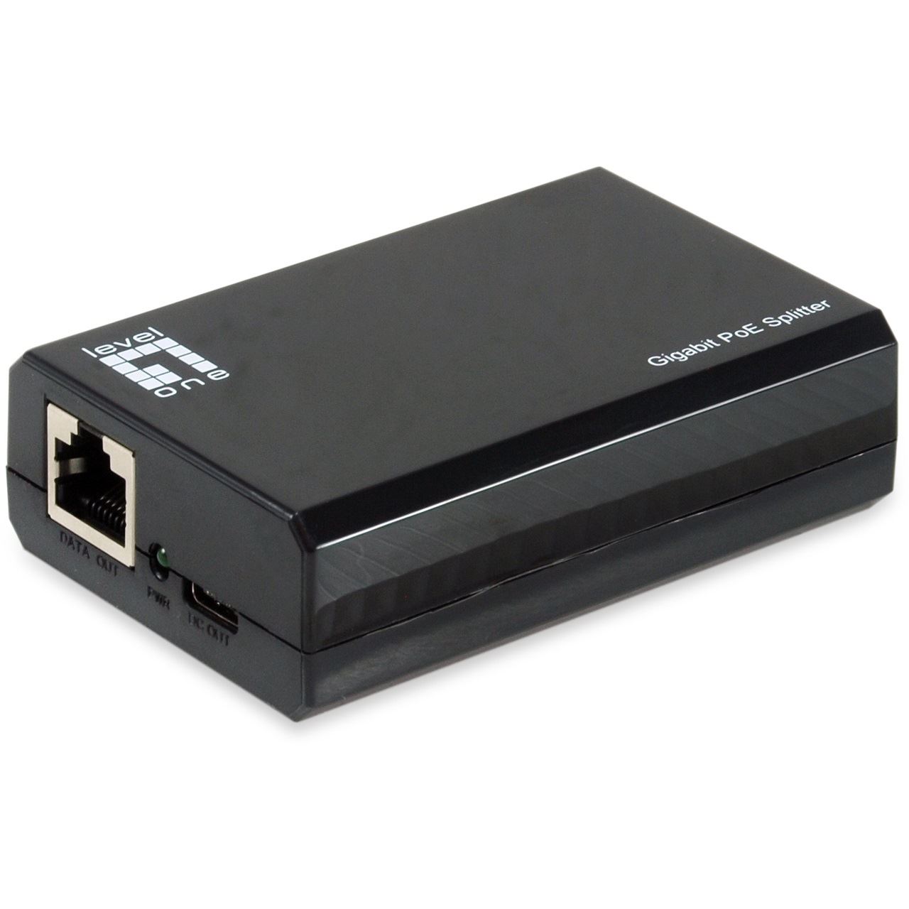 LevelOne Gigabit PoE bt zu USB-C PD 3.0 Splitter. Netzstandard: IEEE 802.3af, IEEE 802.3at, IEEE 802.3bt, Verkabelungstechnologie: 10/100/1000Base-T(X), Produktfarbe: Schwarz. Konformitätsbescheinigungen: CE, RoHS, UKCA. Breite: 53 mm, Tiefe: 24 mm, Höhe: 80 mm. Verpackungsbreite: 125 mm, Verpackungstiefe: 55 mm, Verpackungshöhe: 125 mm. DC-Ausgang Volt: 5V, 12V, 24V, Ausgangsleistung: 50 W