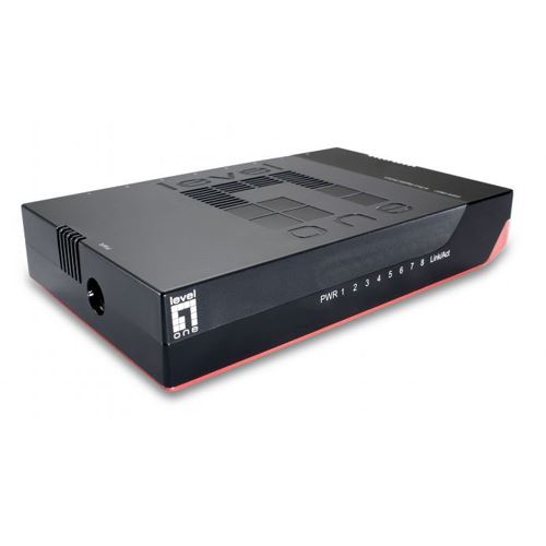 LevelOne 8-Port-Gigabit Ethernet-Switch. Switch-Typ: Unmanaged. Basic Switching RJ-45 Ethernet Ports-Typ: Gigabit Ethernet (10/100/1000), Anzahl der basisschaltenden RJ-45 Ethernet Ports: 8. Vollduplex. MAC-Adressentabelle: 8192 Eintragungen, Routing-/Switching-Kapazität: 16 Gbit/s. Netzstandard: IEEE 802.3, IEEE 802.3ab, IEEE 802.3az, IEEE 802.3u, IEEE 802.3x. Netzstecker: DC-Anschluss. Wandmontage
