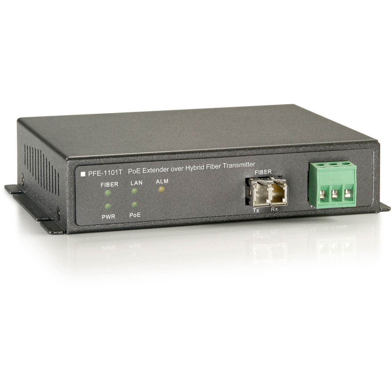 LevelOne PFE-1101T. Typ: Netzwerksender, Maximal mögliche Übertragungsstrecke: 2000 m, Datenübertragungsrate: 100 Mbit/s. Verkabelungstechnologie: 10/100Base-T(X), Netzstandard: IEEE 802.3, IEEE 802.3u, IEEE 802.3x. Produktfarbe: Schwarz, LED-Anzeigen: LAN, PoE, Leistung, Zertifizierung: CE, FCC. AC Eingangsspannung: 100-240 V, AC Eingangsfrequenz: 50 - 60 Hz, Stromverbrauch (Standardbetrieb): 120 W. Breite: 133 mm, Tiefe: 90 mm, Höhe: 28 mm