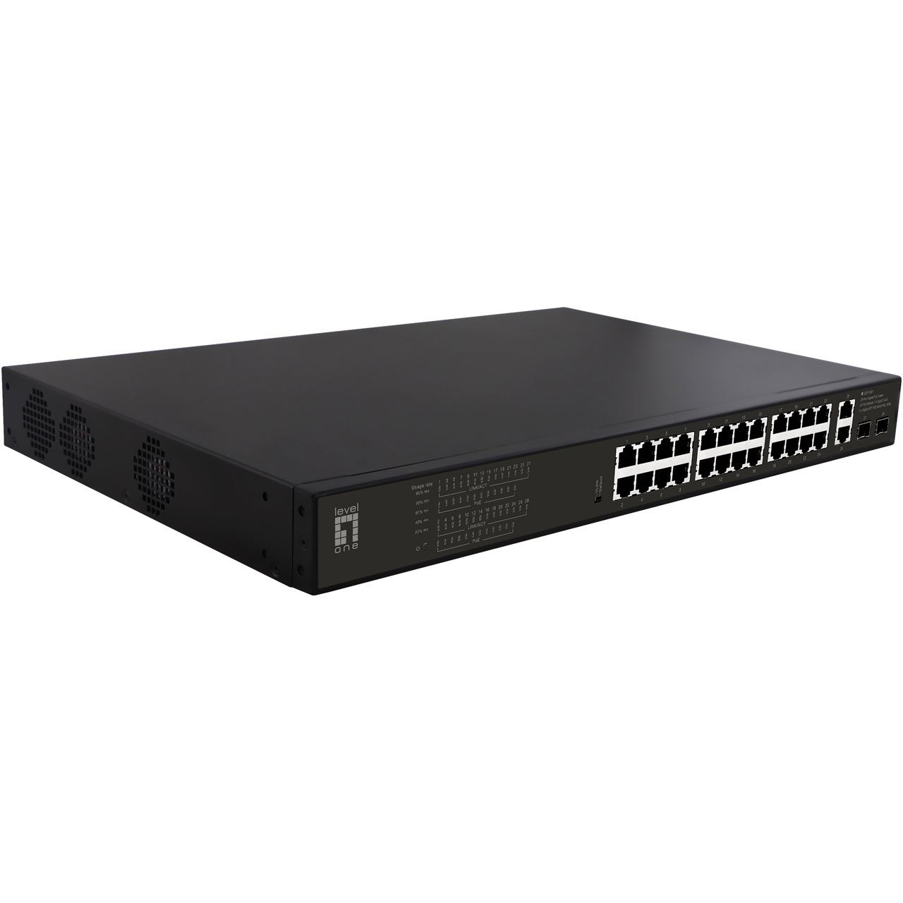 LevelOne GEP-2821. Switch-Typ: Unmanaged. Basic Switching RJ-45 Ethernet Ports-Typ: Gigabit Ethernet (10/100/1000), Anzahl der basisschaltenden RJ-45 Ethernet Ports: 28. MAC-Adressentabelle: 8000 Eintragungen. Netzstandard: IEEE 802.1af, IEEE 802.3at. Power over Ethernet (PoE). Rack-Einbau, Formfaktor: 1U