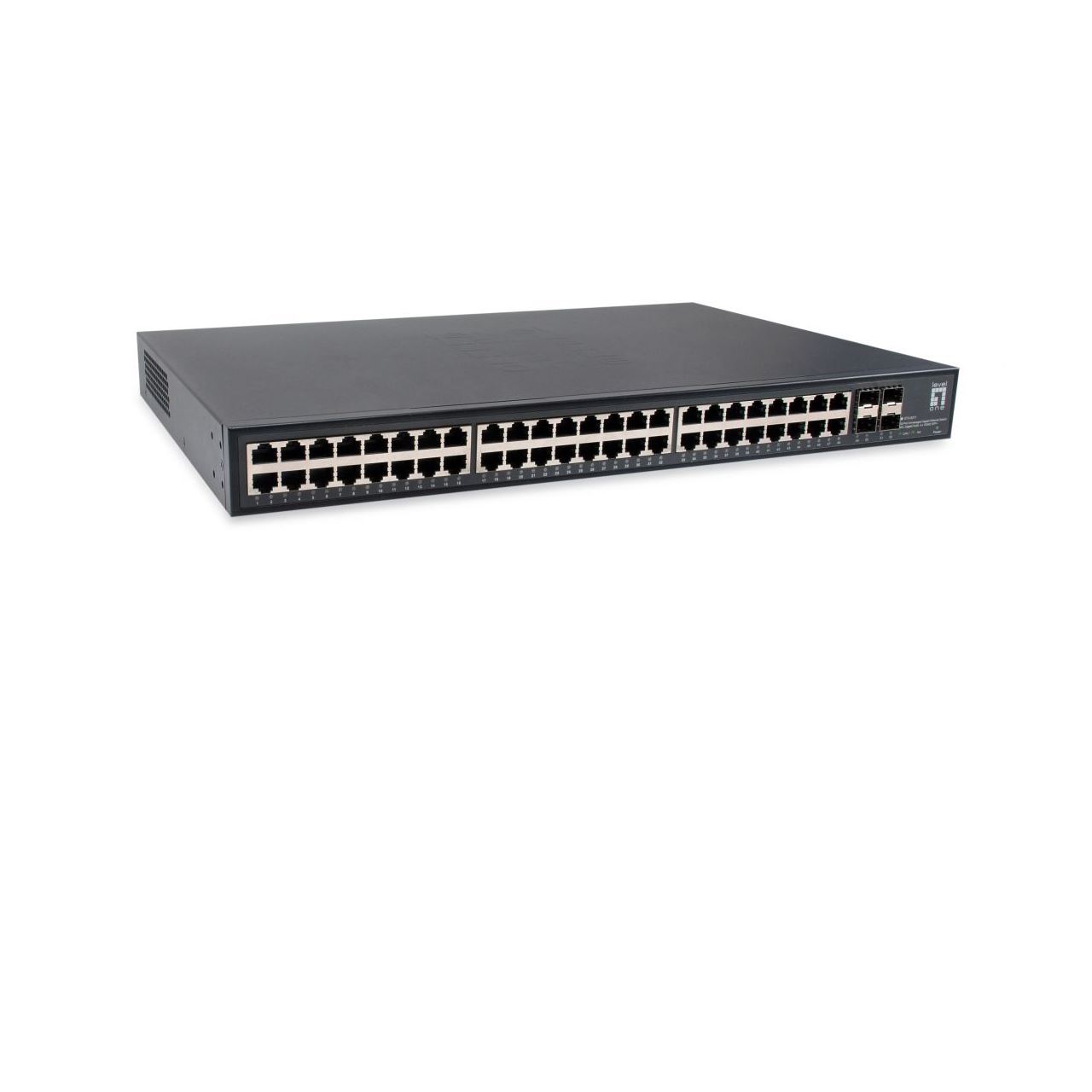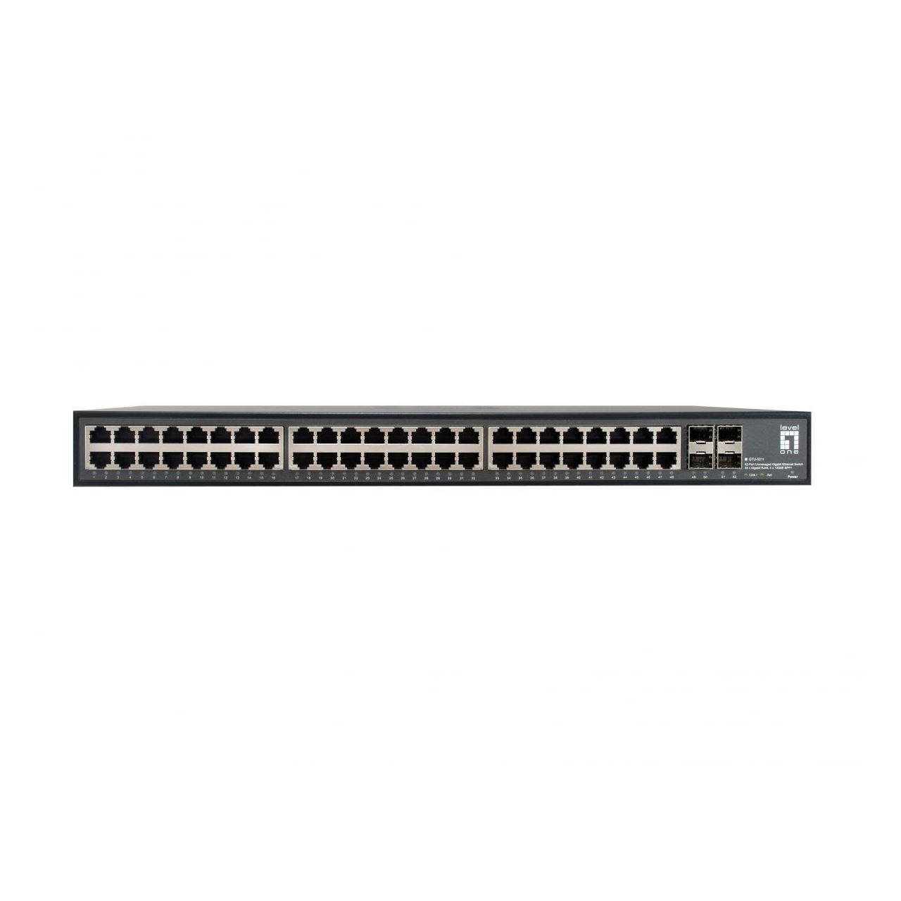 LevelOne GTU-5211. Switch-Typ: Unmanaged. Basic Switching RJ-45 Ethernet Ports-Typ: Gigabit Ethernet (10/100/1000), Anzahl der basisschaltenden RJ-45 Ethernet Ports: 48, Anzahl installierte SFP Module: 4. Vollduplex. MAC-Adressentabelle: 32000 Eintragungen, Routing-/Switching-Kapazität: 176 Gbit/s. Netzstandard: IEEE 802.3, IEEE 802.3ab, IEEE 802.3az, IEEE 802.3u, IEEE 802.3x, IEEE 802.3z. Netzstecker: AC-Eingangsbuchse. Rack-Einbau