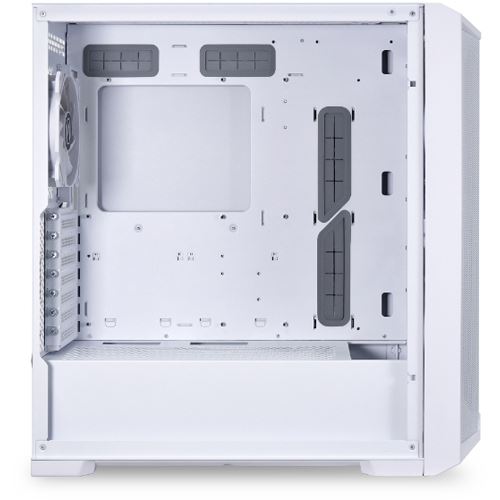 Das Lian Li LANCOOL 215 verfügt über zwei vorinstallierte 200-mm-ARGB-Lüfter und einen 120-mm-Lüfter, die in Kombination mit Mesh-Einsätzen und wabenförmigen Belüftungsöffnungen eine effiziente Belüftung ermöglichen. Das Gehäuse ist ausgestattet mit zwei 200-mm-ARGB-Lüftern und einem 120-Lüfter an der Rückseite. Das Mesh-Panel auf der Vorderseite erzeugt einen großartigen Luftstrom und hält Staub fern. Das Gehäuse enthält obere und untere wabenförmige gefilterte Belüftungsöffnungen, eine breite Lüfter-/Kühler-Kombinationsunterstützung und mehrere Kabelmanagementlösungen, um eine optimale Konfiguration zu ermöglichen.