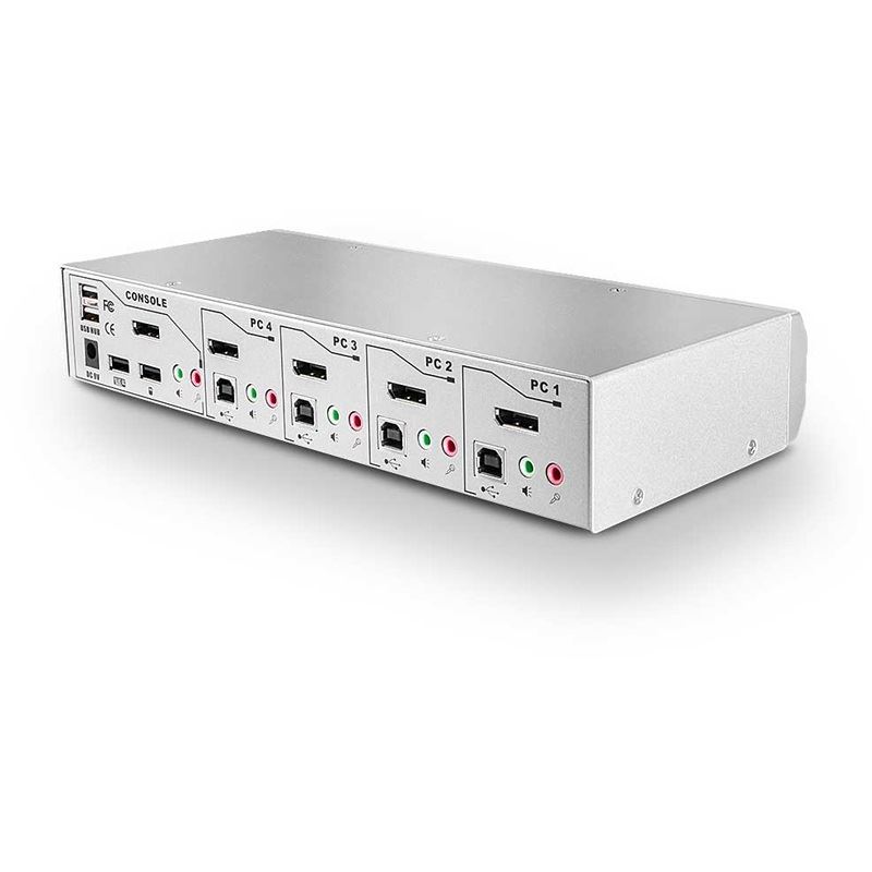 Moderner DisplayPort 4K Desktop KVM und USB 2.0 Sharing Switch zum Anschluss von PCs und Macs mit transparenter Unterstützung für individuelle Maus- und Tastaturtreiber