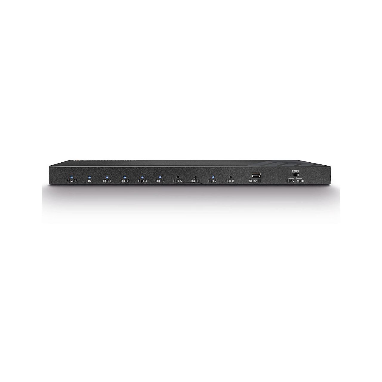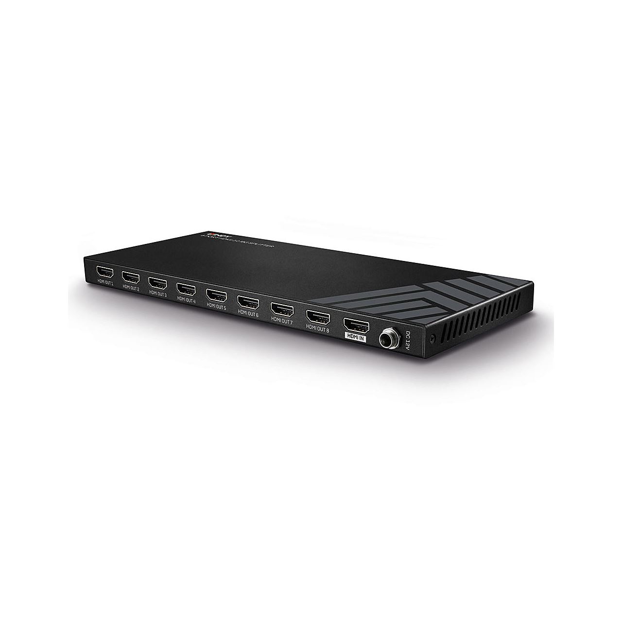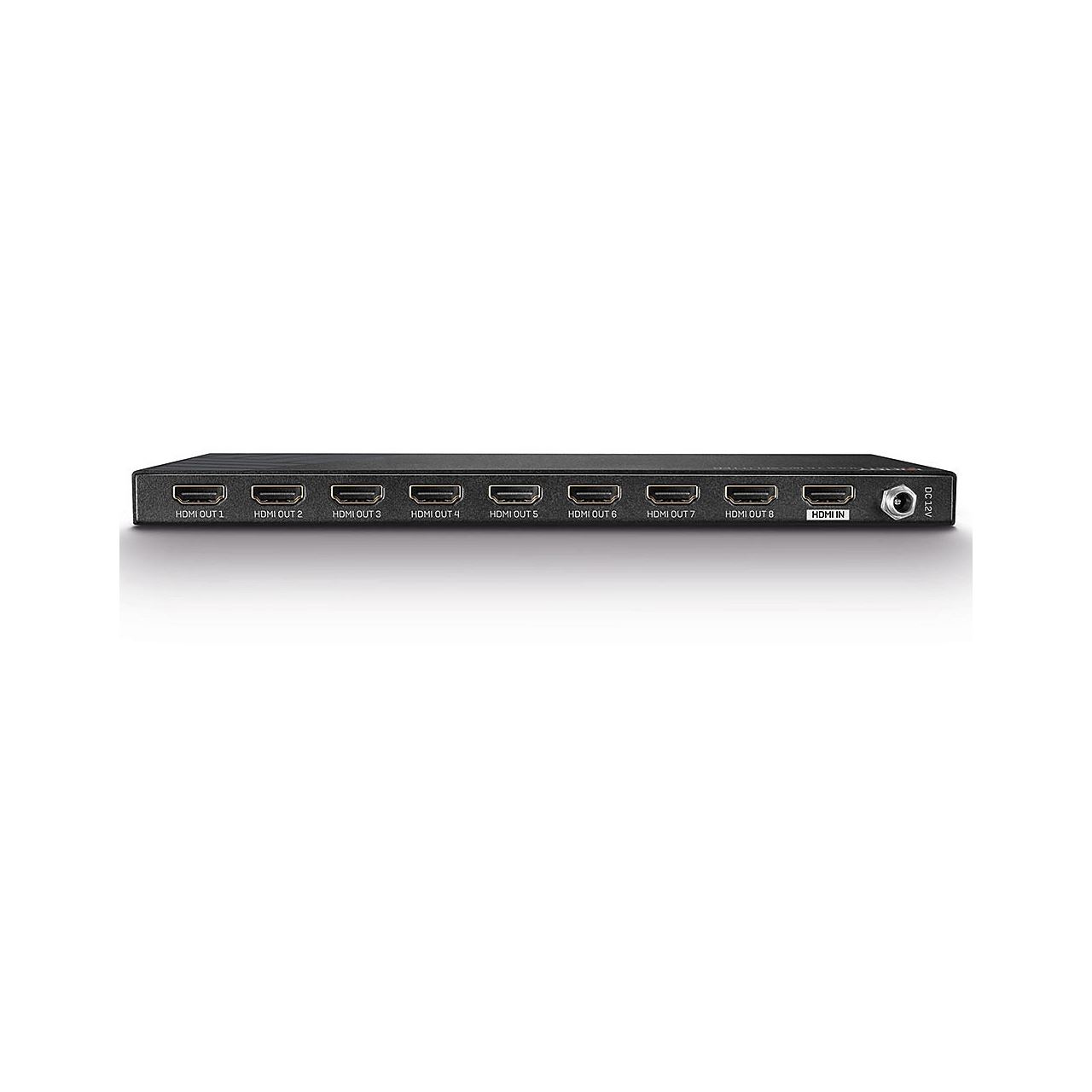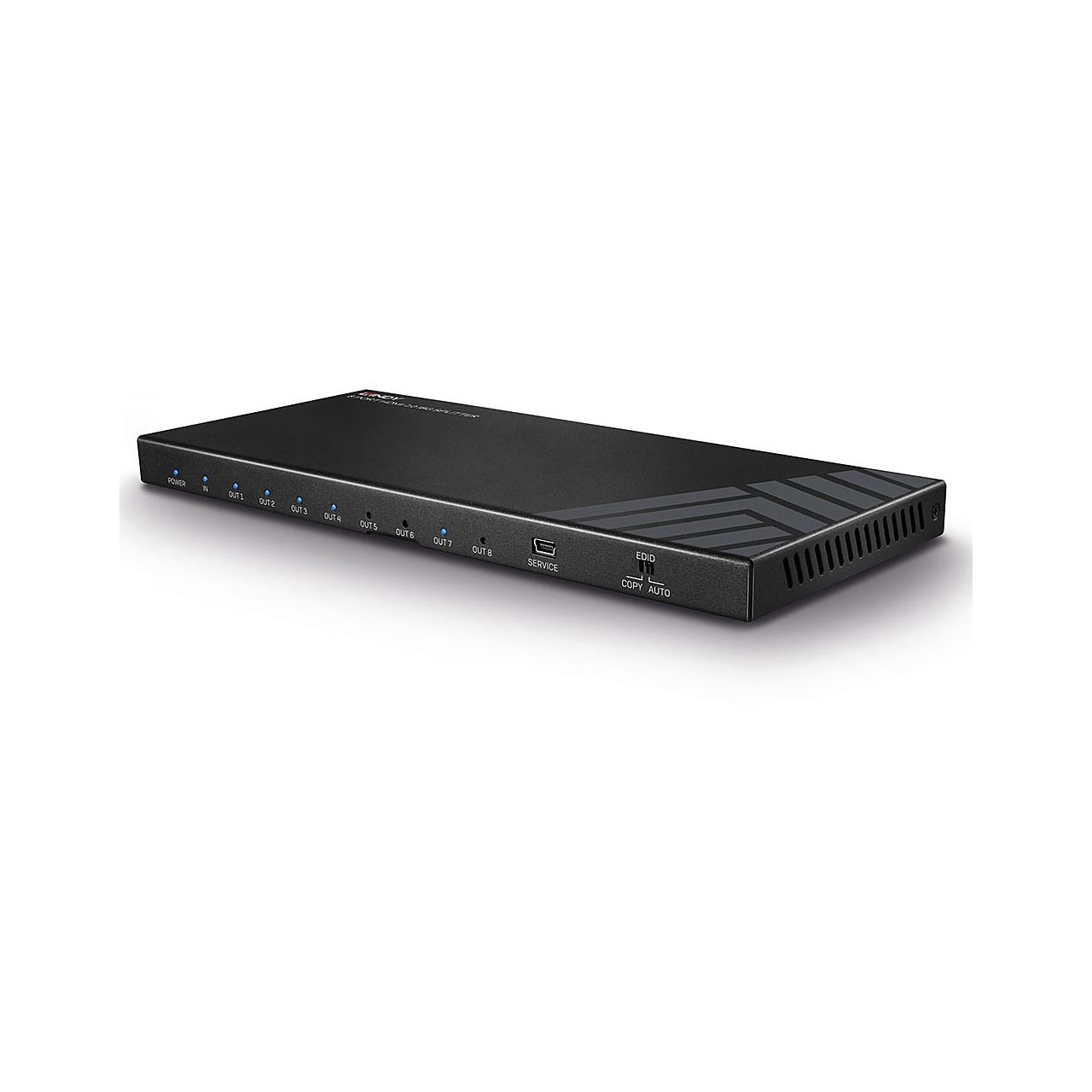 Lindy 38237. Video Porttyp: HDMI, Teilnehmerausgang: 8x HDMI. Maximale Auflösung: 3840 x 2160 Pixel, Produktfarbe: Schwarz, Gehäusematerial: Metall. AC Eingangsspannung: 12 V. Breite: 243 mm, Tiefe: 102 mm, Höhe: 16 mm. Verpackungsbreite: 277 mm, Verpackungstiefe: 183 mm, Verpackungshöhe: 68 mm