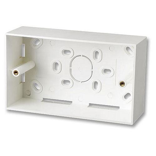 Aufputzrahmen für Blenden der modularen Wanddosenserie in der Größe 146x86mm Doppel-Wanddosen UK, in Kunststoff weiß, RoHS und UL kompatibel