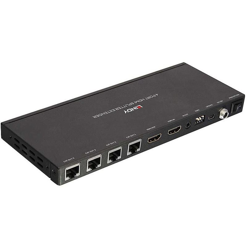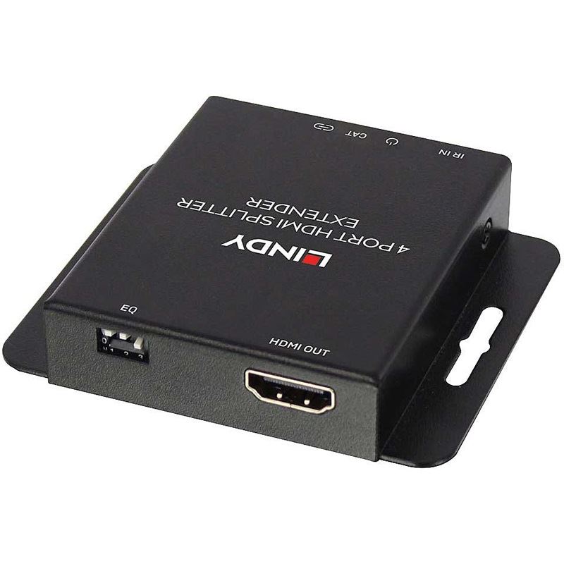 Der Lindy 50m Cat.6 4 Port HDMI & IR Splitter Extender ist eine Plug & Play-Lösung zum Verlängern eines HDMI-Signals auf bis zu 50m und zum Verteilen des Signals auf vier Displays. Dazu wird ein kostengünstiges Cat.6 U/UTP Kabel (nicht enthalten) verwendet. Außerdem können auch Infrarotsignale (20-60kHz) mit den enthaltenen IR-Receiver- und Emitterkabeln verlängert werden.