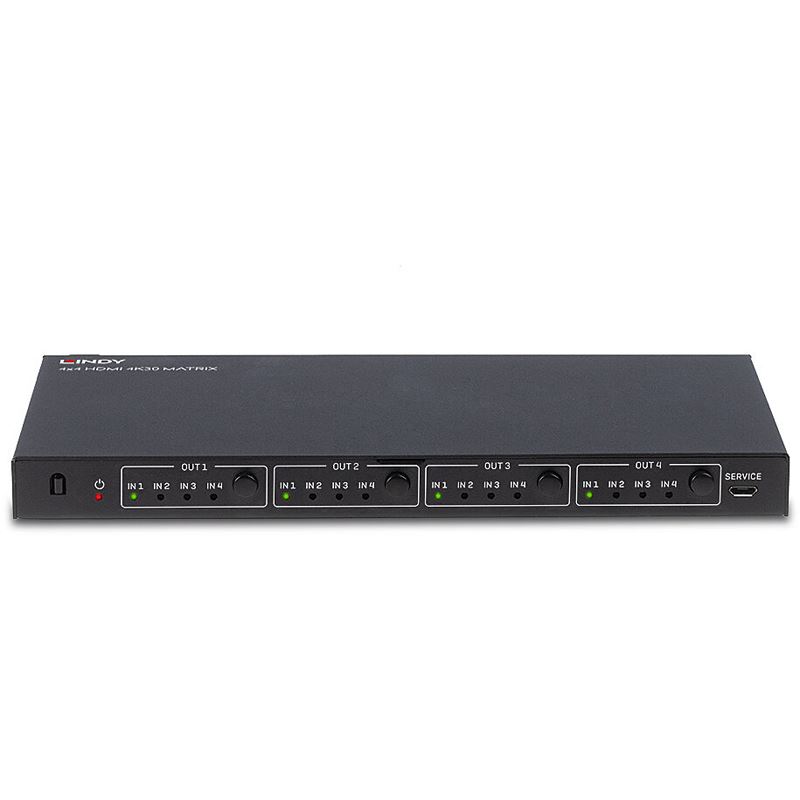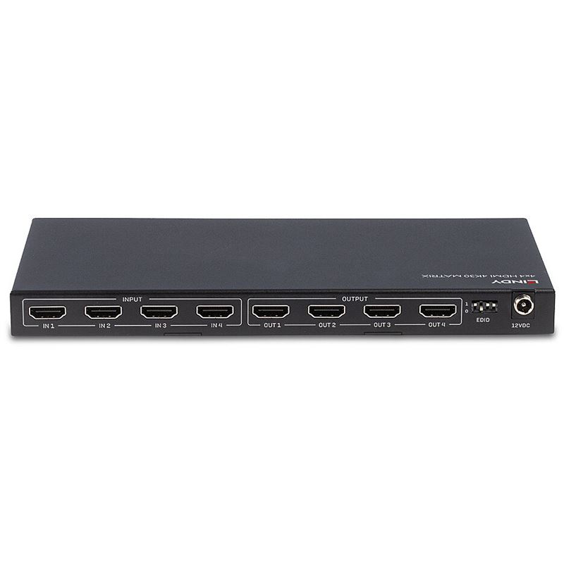 Die Lindy 4x4 HDMI 10.2G Matrix ist eine effiziente Lösung zum Verteilen von 4K-Inhalten von bis zu 4 HDMI-Quellgeräten, inklusive PCs und Mediaplayern, an 4 Displays.