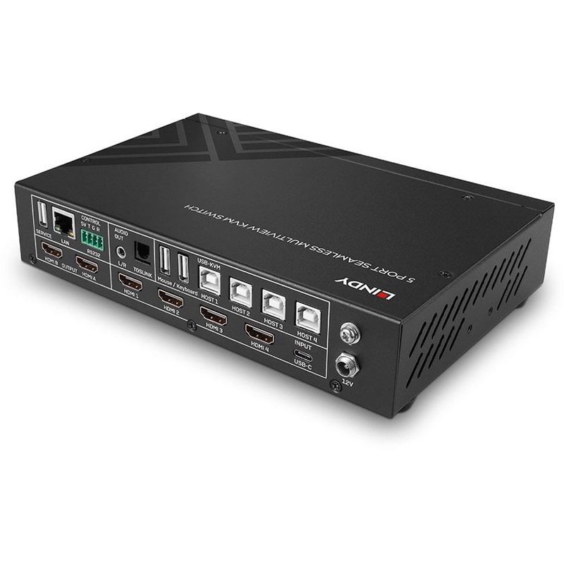 Lindy 32330. Tastatur Porttyp: USB, Maus-Porttyp: USB, Video Porttyp: HDMI. HD-Typ: 4K Ultra HD, Maximale Auflösung: 4096 x 2160 Pixel, Videobandbreite: 60 Hz. Produktfarbe: Schwarz, Gehäusematerial: Metall, Zertifizierung: California Proposition 65. Energiequelle: Gleichstrom, Eingangsspannung: 12 V, Eingangsstrom: 2.5 A. Konformitätsbescheinigungen: CE, Eidgenössische Kommunikationskommission (FCC), REACH, RoHS, UKCA