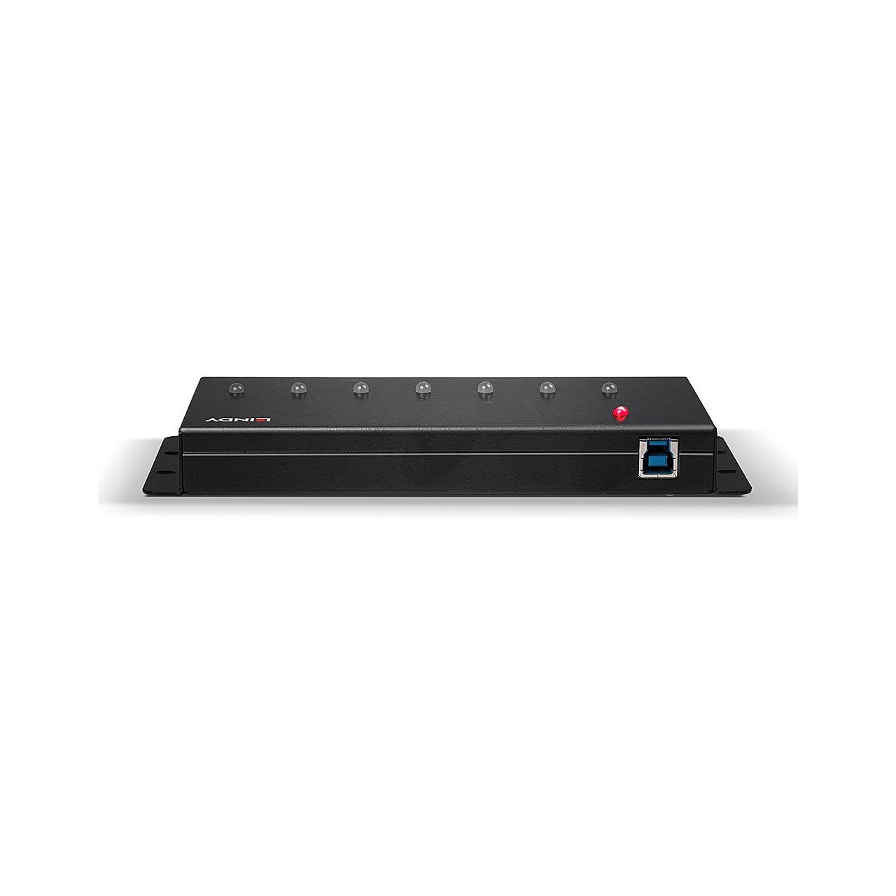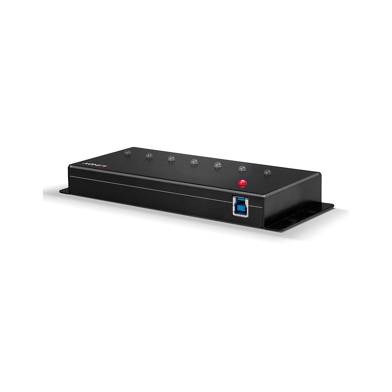 Lindy 43128. Hub-Schnittstellen: USB 3.2 Gen 1 (3.1 Gen 1) Type-A. Datenübertragungsrate: 5000 Mbit/s, Produktfarbe: Schwarz, Kabellänge: 0,8 m. Breite: 185 mm, Tiefe: 75 mm, Höhe: 20 mm. Mitgelieferte Kabel: USB