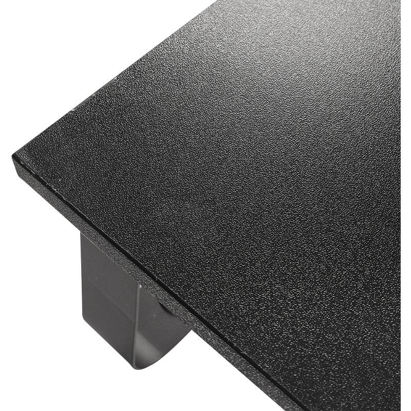 Einziges Manko ist die zu große Breite. Dadurch biegt es sich in der Mitte mehr durch als es müsste und unter dem Monitor lassen sich keine Lautsprecher mehr stellen, nimmt also sehr viel Breite vom Tisch weg, die allerdings als Ablage dienen kann.