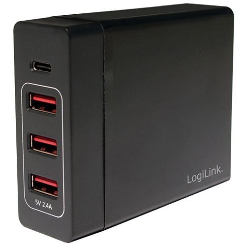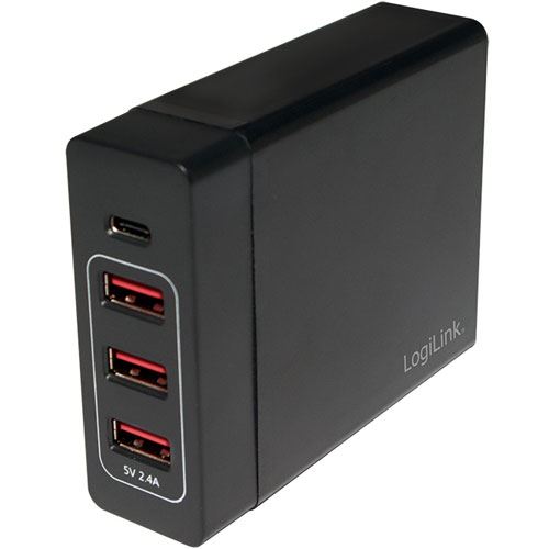 LogiLink PA0122. Aufladetyp: Drinnen, Energiequelle: USB, Aufladekompatibilität: Universal. Eingangsspannung: 100 - 240 V, Maximale Ausgangsspannung: 5 V. Anzahl USB 2.0 Anschlüsse: 4, Energieschutzeigenschaften: Überstrom, Überspannung, Überhitzung, Kurzschluß. Produktfarbe: Schwarz