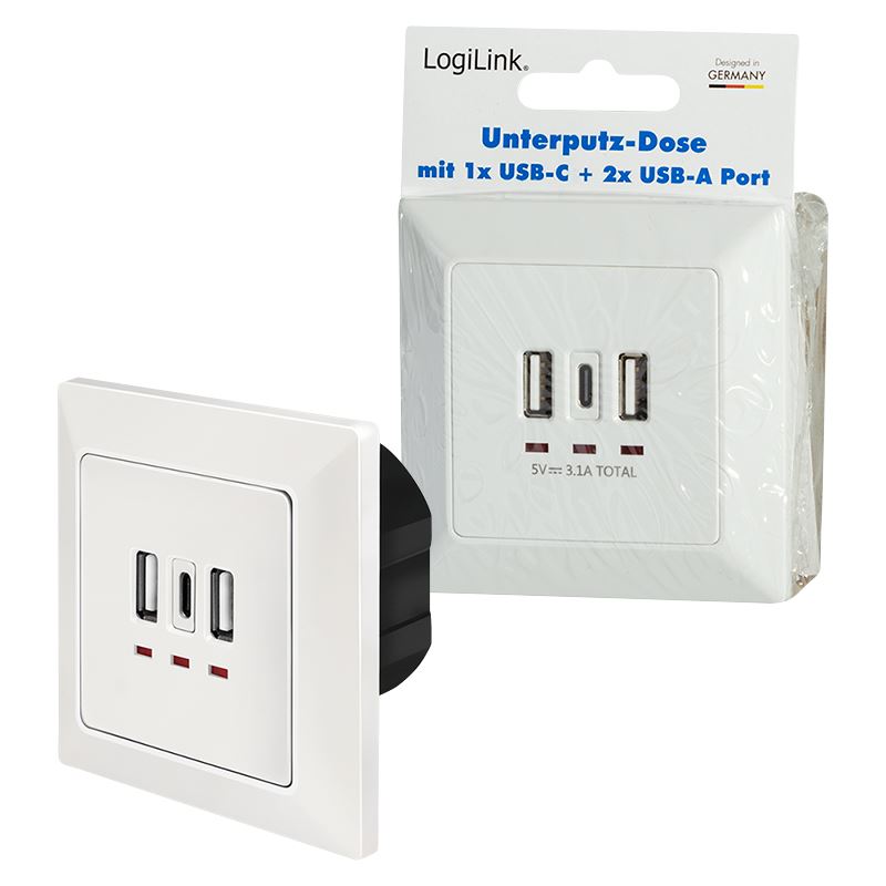 LogiLink PA0254. Buchsen-Typ: 2 x USB A + 1 x USB C. Produktfarbe: Weiß. Nennspannung: 230 V, Bemessungsfrequenz: 50 Hz, USB Ausgangsspannung: 5 V. Breite: 80 mm, Tiefe: 80 mm, Höhe: 38 mm