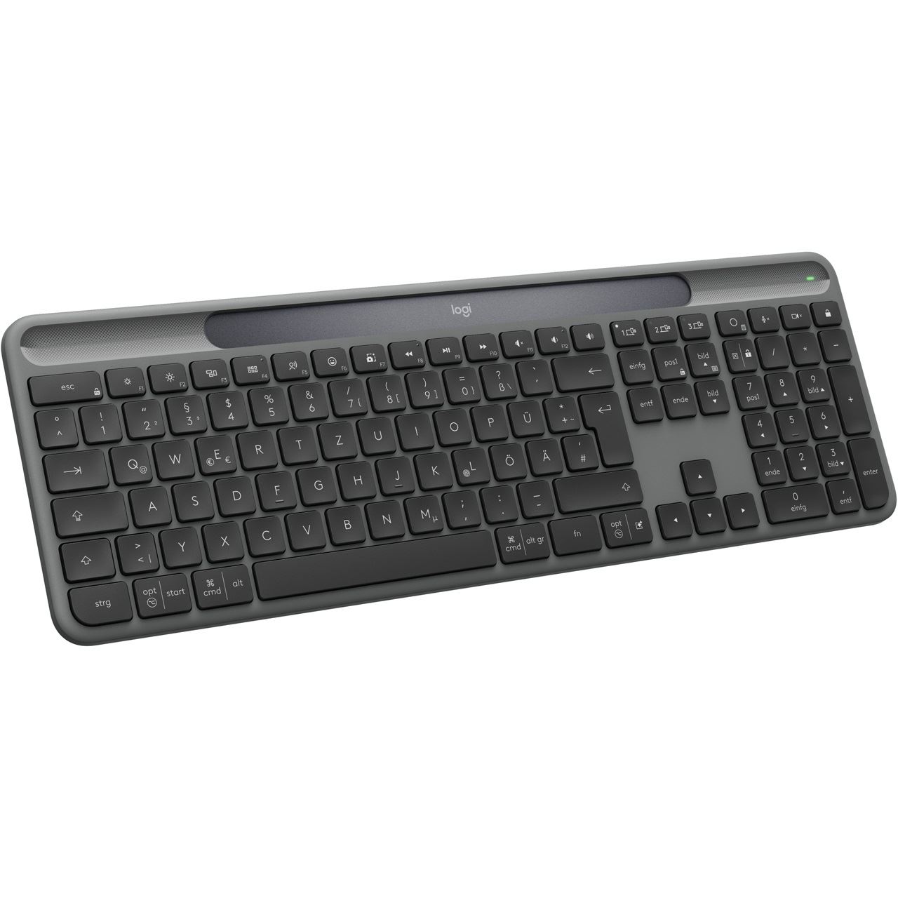 Logitech Signature Slim Solar+ K980. Tastatur-Stil: Gerade. Übertragungstechnik: Kabellos, Geräteschnittstelle: RF Wireless + Bluetooth, Tastaturaufbau: QWERTZ, Empfohlene Nutzung: Universal. Produktfarbe: Graphit