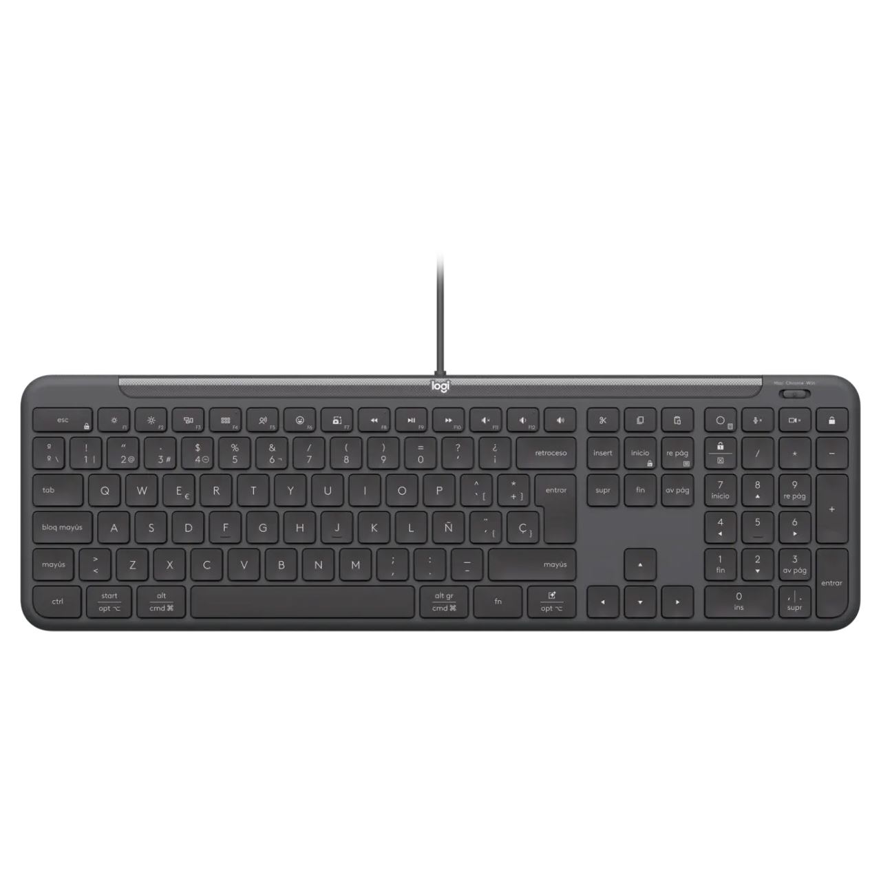 Logitech 920-013343. Tastatur Formfaktor: Volle Größe (100%), Übertragungstechnik: Kabelgebunden, Geräteschnittstelle: USB, Tastatur-Switch: Scherenschalter, Tastaturaufbau: QWERTZ. Kabellänge: 1,8 m. Empfohlene Nutzung: Heimbüro. Produktfarbe: Graphit. Maus enthalten