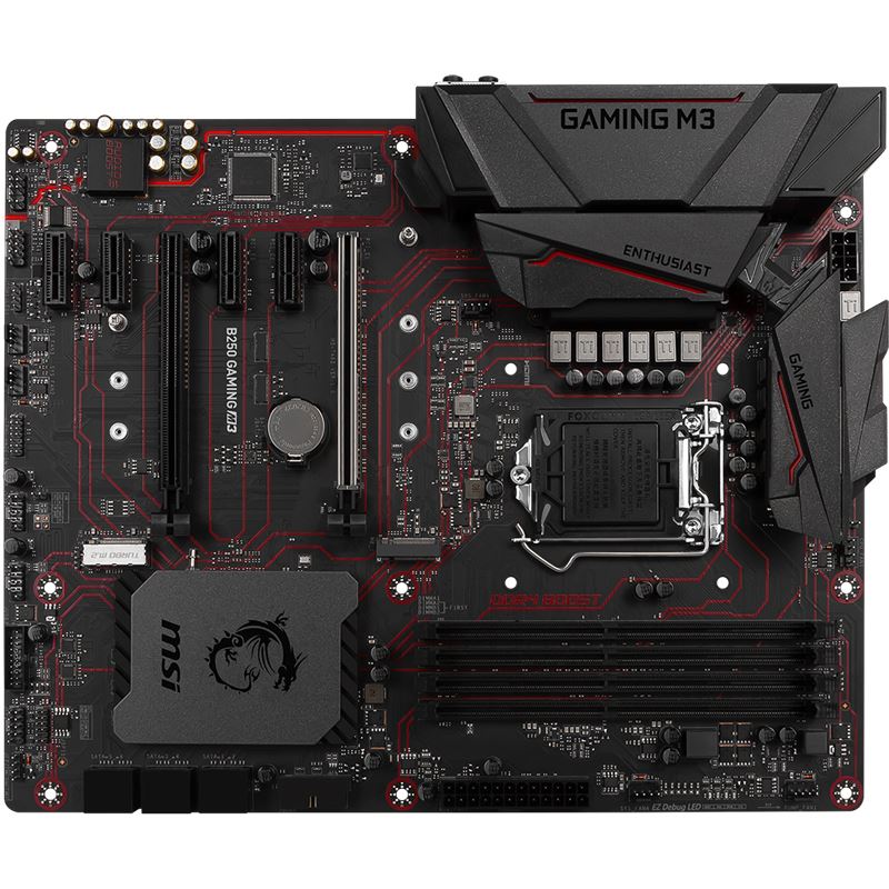 Mit dem B250 GAMING M3 präsentiert MSI Ihnen ein wahres Leistungswunder! Sowohl das Design als auch die Leistung können sich hier sehen lassen. Entwickelt für die innovativen Intel® Core™ Prozessoren der siebten und sechsten Generation können Sie Ihr System mit dem B250 GAMING M3 ATX-Mainboard von MSI auf eine völlig neue Leistungsebene heben. Freuen Sie sich mit Audio Boost 4 und Nahimic 2 auf einen atemberaubenden Sound. Packende Virtual Reality Momente wirken so noch realistischer und lassen Sie mitten ins Spielgeschehen eintauchen.