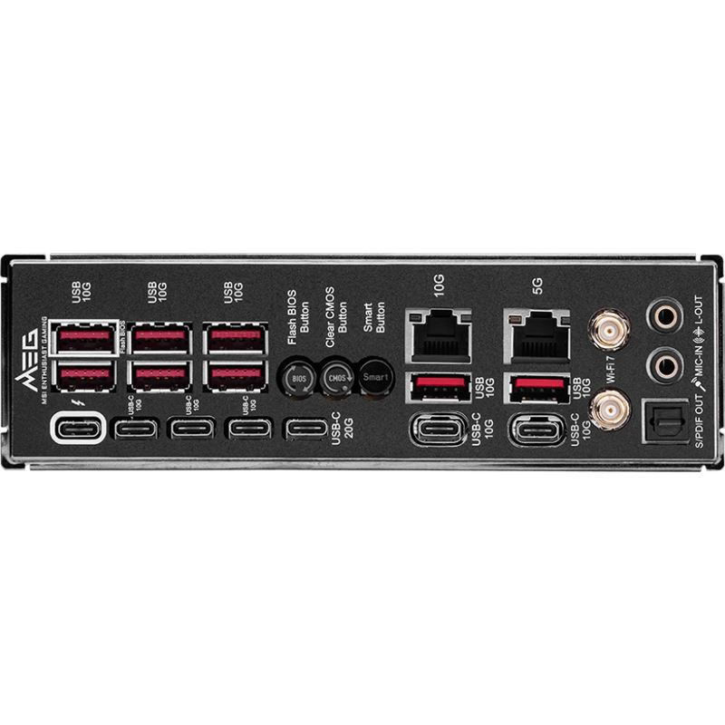 Die Netzwerk- und Konnektivitätsausstattung ist ebenfalls erstklassig: Neben integriertem Wi-Fi 7 und Bluetooth 5.4 bietet das Board ein extrem schnelles 10Gbps LAN, ideal für Gaming, Streaming und professionelle Workflows mit höchsten Anforderungen an Bandbreite und Latenz.