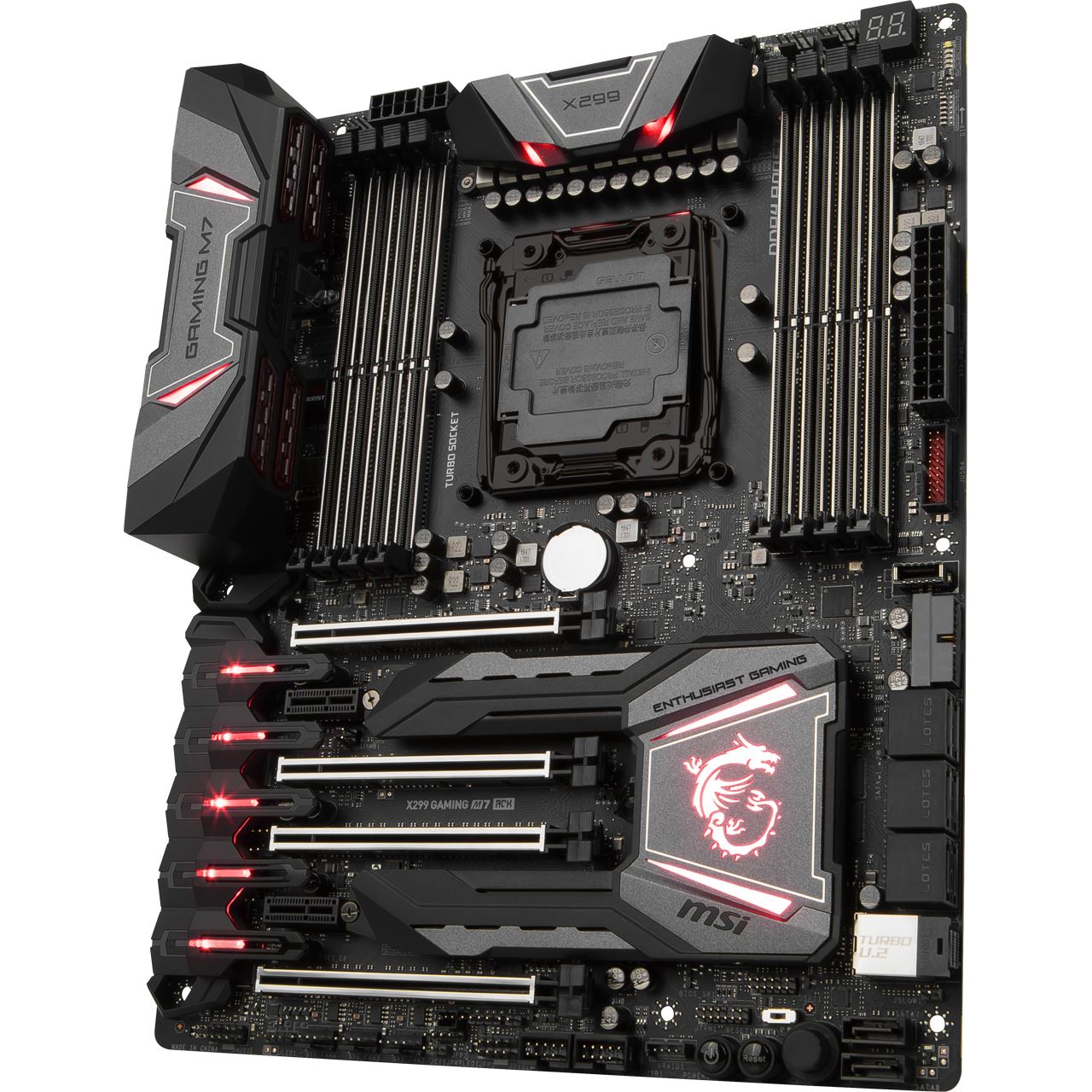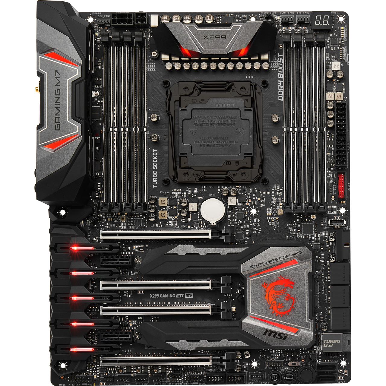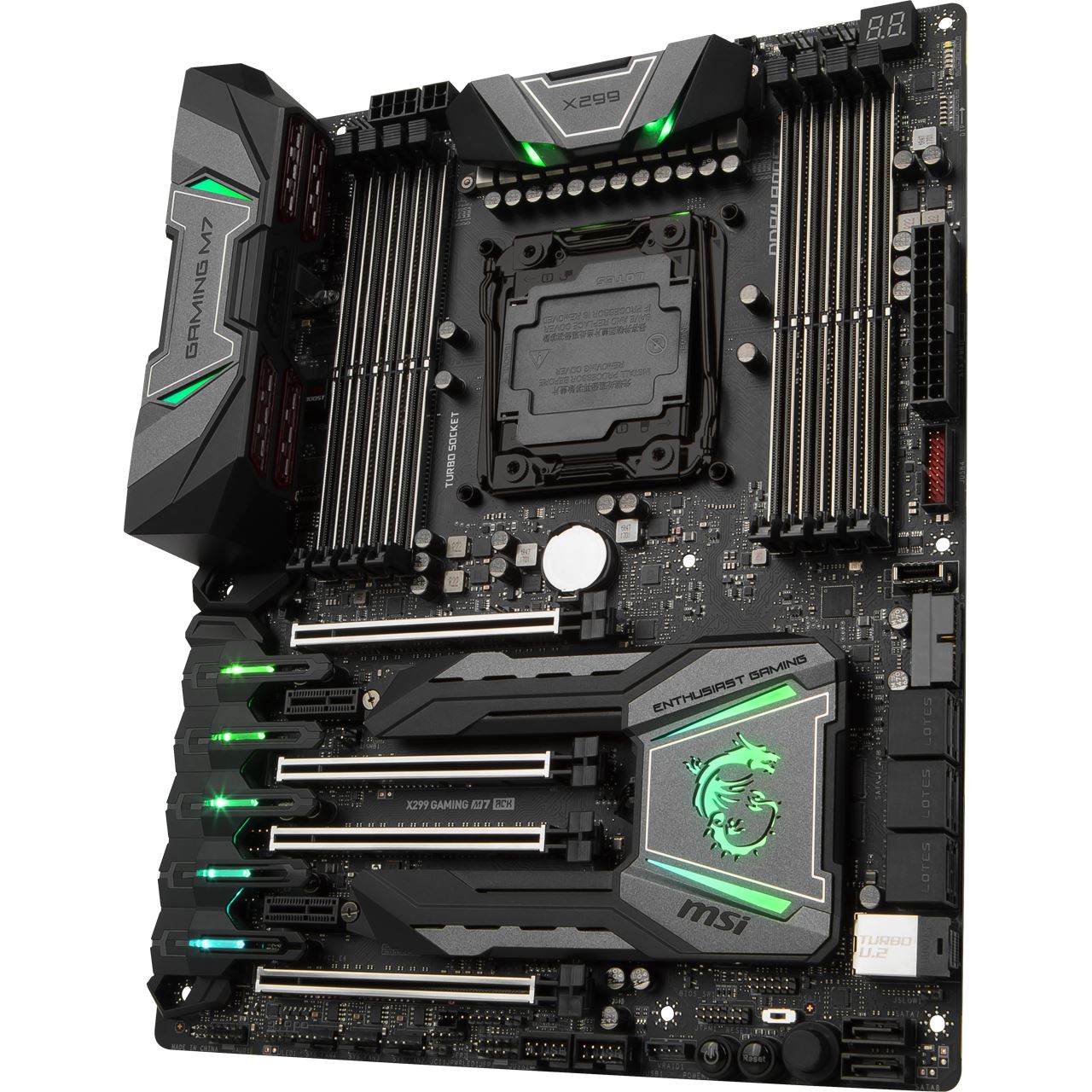 Das MSI X299 GAMING M7 ACK ist Teil der ENTHUSIAST GAMING-Reihe von MSI. Diese richtet sich an anspruchsvolle Nutzer, denen das Maximum an Leistung gerade gut genug ist. Hierfür verfügt das Mainboard über ein starkes 10-Phasen-PWM-Design und ist eine kompromisslose Basis für Prozessoren der X-Serie.