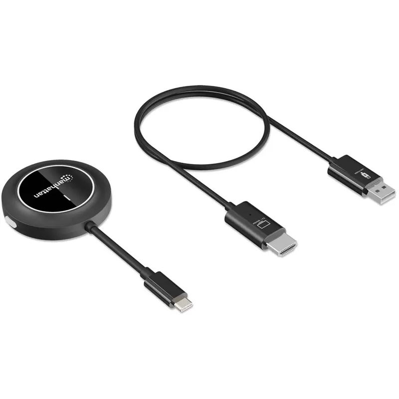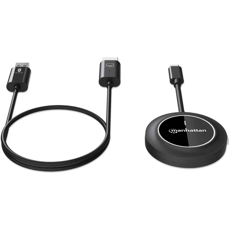 Das Manhattan 1080p Wireless HDMI-Display-Präsentationsset ermöglicht die Darstellung Ihres USB-C-Geräts auf einem beliebigen Fernseher, Beamer oder Monitor mit HDMI-Port. Spiegeln oder erweitern Sie Ihr Bild auf dem externen Display ganz ohne lästigen Kabelsalat - perfekt für Präsentationen, Schulungen und Videostreaming.
