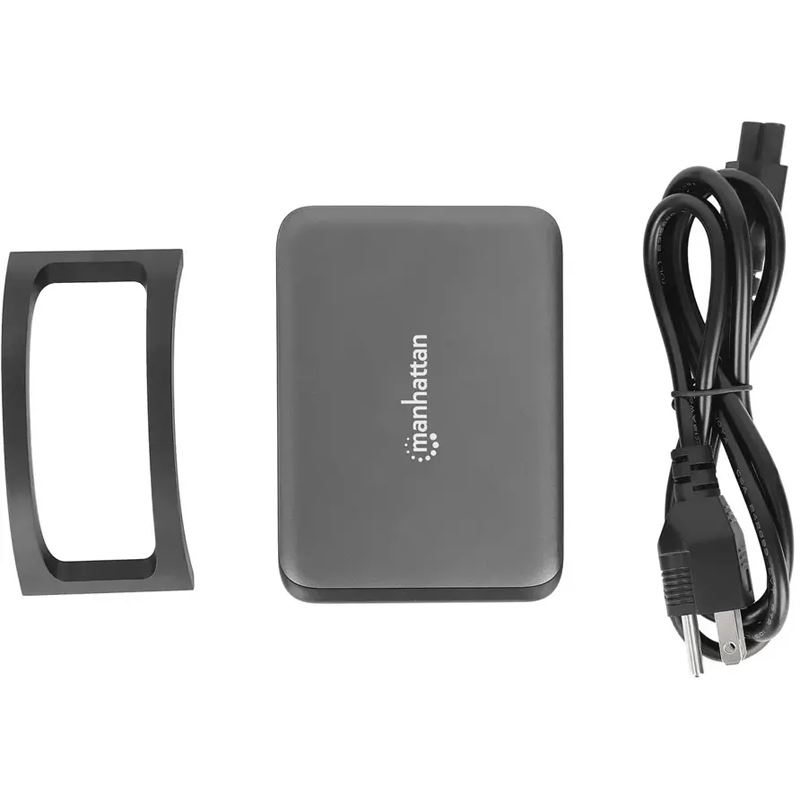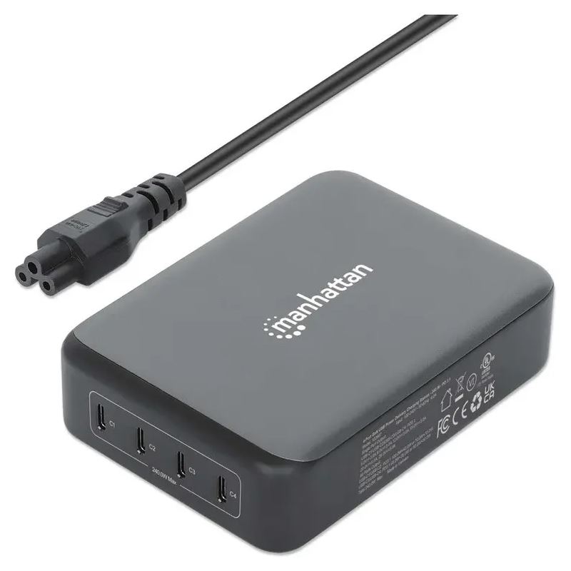 Manhattan 102667. Aufladetyp: Drinnen, Energiequelle: AC, Aufladekompatibilität: Handy, Laptop, Tragbare Spielekonsole, Smartphone, Tablets. Eingangsspannung: 100 - 240 V, Maximale Ausgangsspannung: 28 V. USB Typ-C Anzahl Anschlüsse: 4, Schnellladung, Energieschutzeigenschaften: Überstrom, Überspannung, Überhitzung, Kurzschluß. Kabellänge: 1 m, Produktfarbe: Schwarz