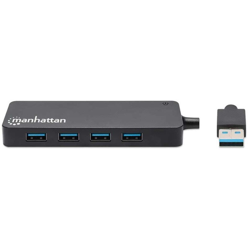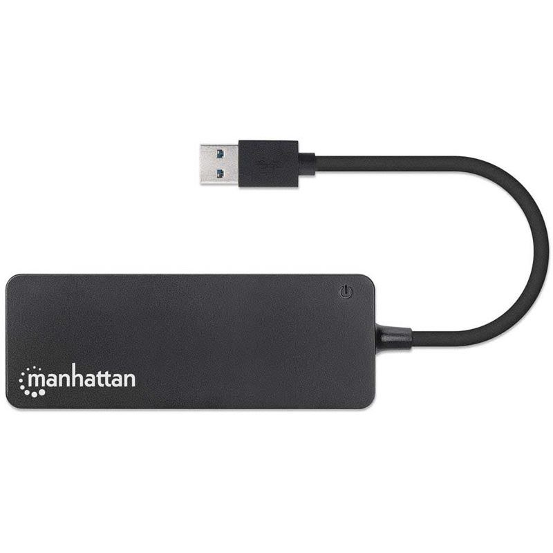 Manhattan 4-Port USB 3.2 Gen 1 Hub, USB-A-Stecker auf 4 x USB-A-Buchse, 5 Gbit/s Datenübertragungsraten, Stromversorgung über USB, schwarz. Hostschnittstelle: USB 3.2 Gen 1 (3.1 Gen 1) Type-A, Hub-Schnittstellen: USB 3.2 Gen 1 (3.1 Gen 1) Type-A. Datenübertragungsrate: 5000 Mbit/s, Produktfarbe: Schwarz, Gehäusematerial: Acrylnitril-Butadien-Styrol (ABS). Ausgangsstrom: 1 A. Unterstützt Windows-Betriebssysteme: Windows 10, Windows 10 Education, Windows 10 Education x64, Windows 10 Enterprise, Windows 10..., Unterstützt Mac-Betriebssysteme: Mac OS 9.0, Mac OS 9.1, Mac OS 9.2, Mac OS X 10.0 Cheetah, Mac OS X 10.1 Puma, Mac OS X 10.10.... Breite: 45 mm, Tiefe: 90 mm, Höhe: 15 mm