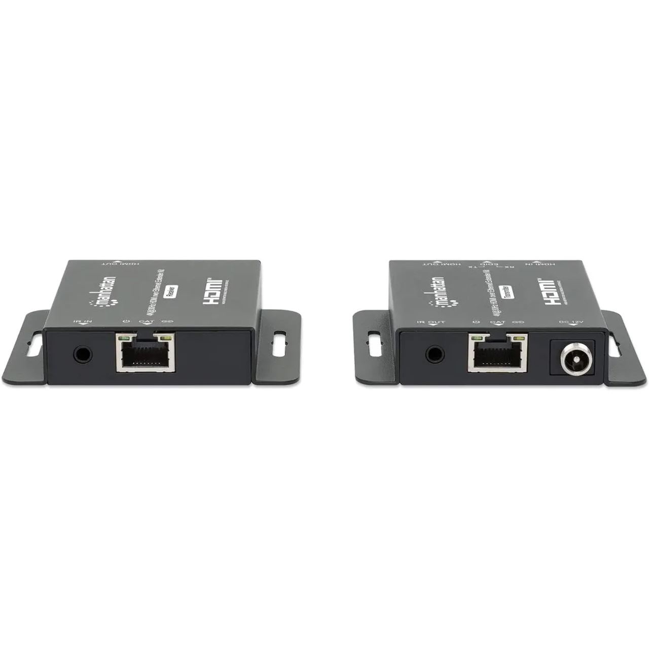 Dieses Manhattan 4K HDMI over Ethernet Extender Set überträgt ein HDMI-Audio/Video-Signal über ein einzelnes RJ45 Cat6-Netzwerkkabel, entweder in 4K@30Hz (3840 × 2160) auf bis zu 40 m oder 1080p@60Hz bis zu 70 m. Das Set liefert High-Quality-Video und Multichannel-Audio von Streaming-Geräten, Spielekonsolen (PS4, PS4 Pro, PS5, Xbox Series X/S, Switch etc.), Blu-ray-Playern, Satelliten-Receivern, PCs, Laptops, MacBooks® oder anderen HDMI-Zuspielgeräten über deutlich größere Distanzen als es passive Standard-HDMI-Kabel allein könnten. Sender- und Empfängermodul verfügen zudem über 3,5 mm-Klinkenbuchsen als Infrarot-Eingänge (IR) für Fernbedienungen, mit denen Sie das Quellgerät oder das Display am jeweiligen Ende steuern können.