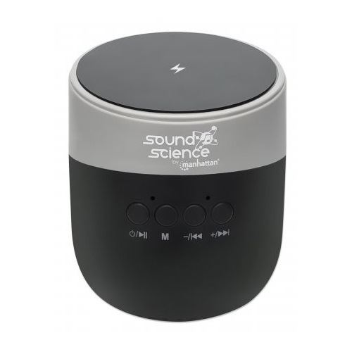 Der Manhattan Sound Science Bluetooth®-Lautsprecher mit Induktionsladepad lädt Ihre kompatiblen Geräte wie Handys, Smartwatches und Funkkopfhörer kabellos mit 5 W/1 A. Smartphones müssen Sie dafür nicht mal aus der Schutzhülle nehmen, das Ladepad auf der Oberseite funktioniert auch ohne direkten Kontakt. Überladungs-, Überspannungs- und Überhitzungsschutz sorgen für maximale Gerätesicherheit. In Sachen Musik haben Sie noch deutlich mehr kabellose Freiheit: Spielen Sie Ihre Lieblingssongs von Bluetooth-fähigen Geräten und steuern Sie sie bei Bedarf über die integrierten Bedienelemente. Trotz seinem sehr kompakten Format läuft dieser Lautsprecher bei seiner Klangqualität zu Höchstform auf und bildet ein klares Upgrade gegenüber den integrierten Lautsprechern von Handy, Tablet oder Notebook, wahlweise auch direkt von einer MicroSD-Karte.