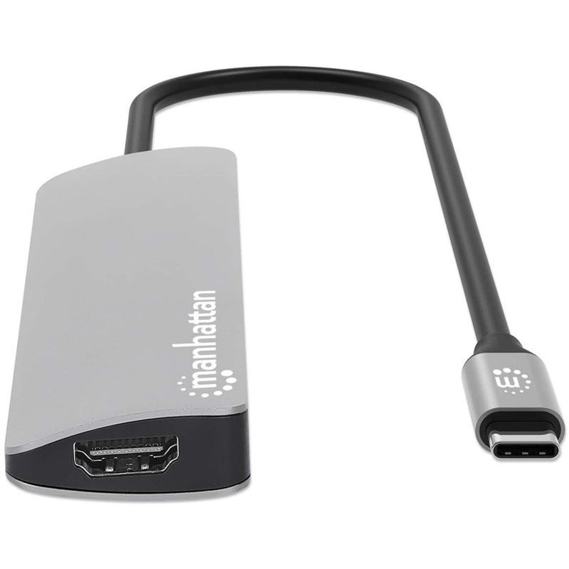 Manhattan 190442. Übertragungstechnik: Kabelgebunden, Hostschnittstelle: USB 3.2 Gen 1 (3.1 Gen 1) Type-C, USB-Stromversorgung bis zu: 100 W. Produktfarbe: Grau, Name der Farbe: Space Grey, Kompatible Speicherkarten: MicroSD (TransFlash), SD. Energiequelle: USB, Netzstecker: USB Typ-C, Ausgangsspannung: 5/9/12/15/19/20 V. Unterstützt Windows-Betriebssysteme: Windows 10, Windows 11, Windows 7, Windows 8.1, Unterstützung anderer Betriebsysteme: Android, ChromeOS, iOS, iPadOS. Breite: 34 mm, Tiefe: 135 mm, Höhe: 13 mm