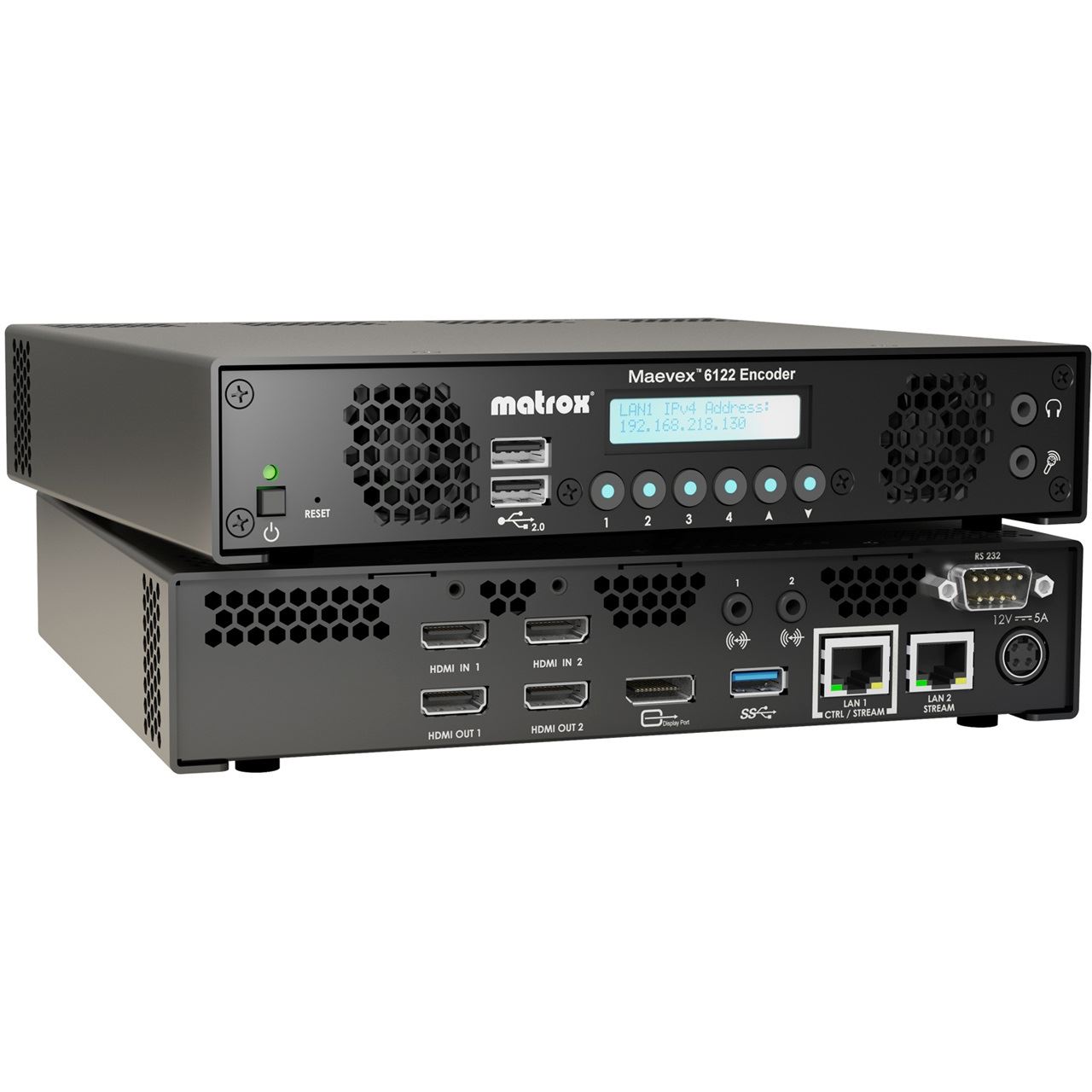 Matrox Maevex 6122 Dual 4K Enterprise Encoder / MVX-E6122-2. Maximale Video-Auflösung: 3840 x 2160 Pixel, Maximale Framerate: 60 fps, Videokompressionsformate: H.264