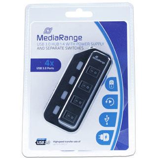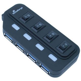 USB 3.0 Hub für Super-Speed-Datenübertragung mit vier Ports zum Anschluss von bis zu vier USB-Geräten (z.B. Maus, Tastatur, Drucker, externe Festplatte) an einen USB-Anschluss. An jedem Port befindet sich ein Schalter, sodass die einzelnen Verbraucher separat geschaltet werden können. Mit zusätzlichem Netzteil. Abwärtskompatibel zu USB 2.0.