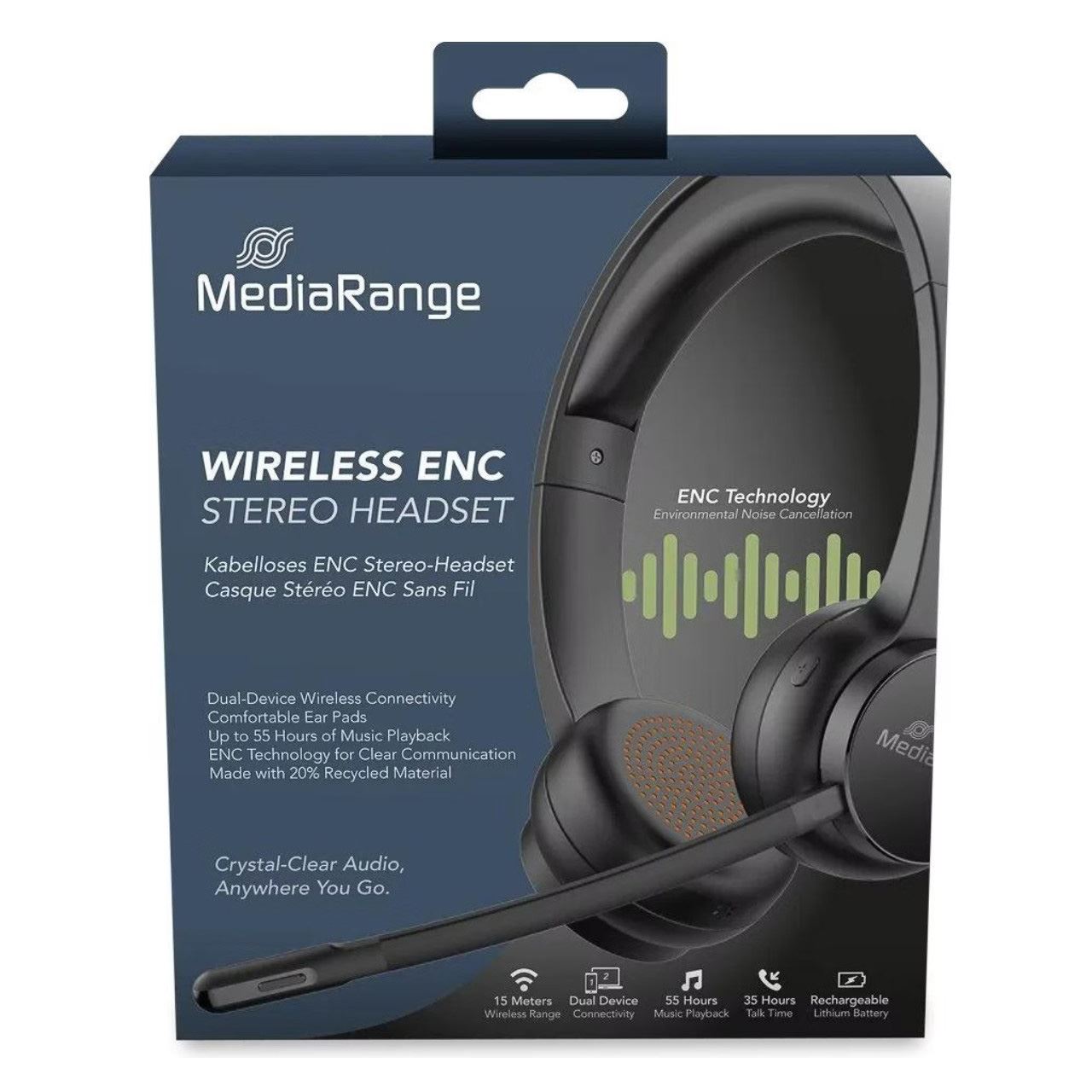 MediaRange Bluetooth ENC Stereo Headset 400mAh Akku schwarz