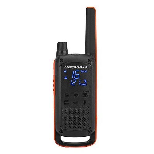 Motorola Talkabout T82. Zweck: Professioneller Mobilfunk (PMR), Anzahl der Kanäle (insgesamt): 16 Kanäle, Funkfrequenz: 446 - 446.2 MHz. Display-Typ: LED. USB-Stecker: Mikro-USB. Akku-/Batterietechnologie: Nickel-Metallhydrid (NiMH). Breite: 57 mm, Tiefe: 181 mm, Höhe: 33 mm