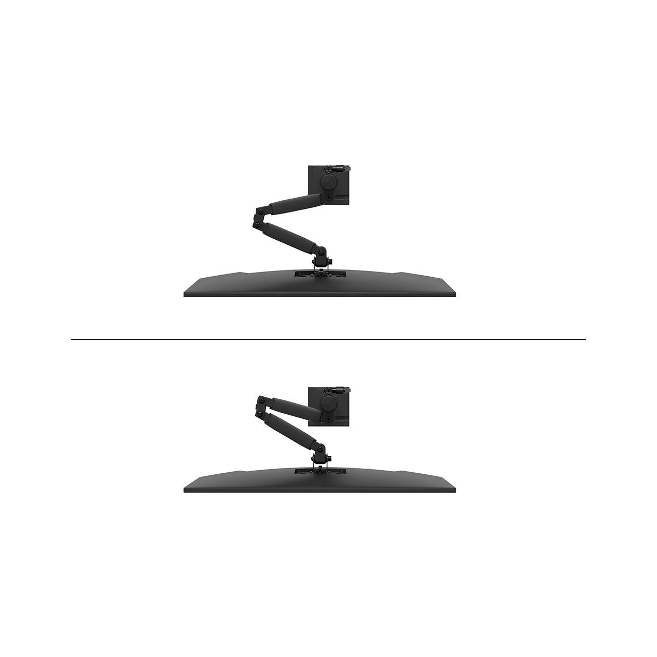 Die NERO Monitor-Tischhalterung verfügt über eine manuelle Höhen- und Tiefenverstellung, mit der Sie Ihren Arbeitsplatz ganz nach Ihren Wünschen einrichten können. Außerdem verhindert der clevere 180°-Stoppmechanismus, dass die Halterung mit der Wand oder der Trennwand in Berührung kommt, wenn sie in deren Nähe angebracht wird. Der geschweißte Sockel bedeutet optimale Stabilität und Standfestigkeit. Das praktische Kabelmanagementsystem sorgt für eine saubere Kabelführung. Außerdem bietet der Sockel der DS60-600BL1 eine bequeme Ablagefläche für das Telefon und sorgt so für einen aufgeräumten Schreibtisch.