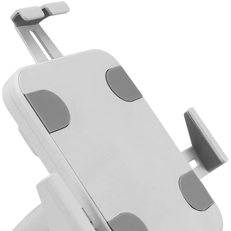 Der Bodenständer verfügt über ein Diebstahlschutzschloss und einen verschraubten Fuß für zusätzliche Sicherheit. Anti-Rutsch-Pads schützen das Tablet vor Kratzern, während die höhen- und breitenverstellbaren Klammern für eine sichere und feste Positionierung des Gerätes sorgen. Auf der Oberseite befindet sich eine Aussparung für die Kamera des Tablets. Die Kabel können über das interne Kabelmanagementsystem ordentlich verlegt werden. Die FL15-625WH1 ist für Tablets mit einer Dicke von 0-8,5 mm geeignet.