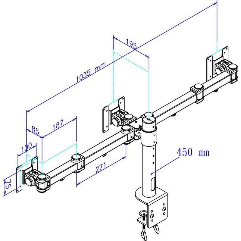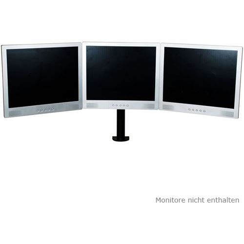 Die Neomounts Tischhalterung, Modell FPMA-D960D3, ist eine neig-, schwenk- und drehbar Tischhalterung für drei Flachbildschirme bis 21" (53 cm). Diese Halterung ist eine gute Wahl für platzsparende Platzierung auf Schreibtischen mittels einer Tischklemme. Neomounts neig-(180°), dreh- (360°) und schwenkbare (180°) Technologie ermöglicht es die Halterung auf jeden Betrachtungswinkel zu ändern, um vollumfänglich von den Möglichkeiten des Flachbildschirms zu profitieren. Die Halterung ist manuell höhenverstellbar von 0 bis 45 Zentimetern und in der Tiefe einstellbar von 10 bis 43 Zentimetern. Eine einzigartige Kabeführung verdeckt und führt Kabel von der Halterung zum Flachbildschirm. Verstecken Sie Ihre Kabel um den Arbeitsplatz schön und ordentlich zu halten. Durch eine ergonomische Halterung können Nacken - und Rückenbeschwerden vermieden werden. Ideal für den Einsatz in Büros und auf Theken oder in einem Empfangsbereich. Neomounts FPMA-D960D3 hat drei Drehpunkte und eignet sich für Bildschirme bis 21". Die Tragfähigkeit dieses Produkts ist für Bildschirme bis 6 kg. Die Tischhalterung ist geeignet für Bildschirme mit VESA 75x75 oder 100x100 mm Lochmuster. Verschiedene andere Lochmuster können unter Verwendung von Neomounts Vesa-Adapterplatten abgedeckt werden. Das benötigte Befestigungsmaterial ist im Lieferumfang enthalten.