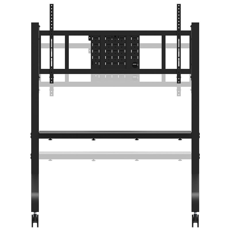 Der MOVE Go XL ist mit seiner stabilen Struktur die perfekte Lösung für großformatige und ultrabreite 105" (Touch-)Bildschirme. Der Bodenständer bietet eine manuelle Höhenverstellung in 2 voreingestellten Positionen, die von 129 bis 139 cm reichen und eine optimale Sichthöhe gewährleisten. Für zusätzliche Sicherheit kann der Bildschirm durch Verriegeln der Halterungen mit einem Vorhängeschloss (nicht im Lieferumfang enthalten) fixiert werden. Zusätzlich sind eine Multimedia-Ablage (vorne und hinten montierbar, max. 10 kg) und ein abschließbares, belüftetes Hardware-Fach mit Kabelöffnung im Lieferumfang enthalten und können optional installiert werden.