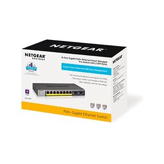 Der 8-Port Gigabit PoE + Ethernet Smart Managed Pro Switch GS110TPv3 von NETGEAR verfügt über 8 PoE-upferports und 2 dedizierte SFP-Ports für Glasfaser-Uplinks. Jetzt können PoE-Geräte mit einem angemessenen PoE-Leistungsbudget von 55 W bereit gestellt werden. Jeder PoE-Port kann bis zu 30 Watt liefern, um die angeschlossenen Geräte einzuschalten. Der lüfterlose GS110TPv3 unterstützt den vollkommen geräuschlosen Desktop-Betrieb oder die Wandmontage. Der Smart Managed Pro Switch GS110TPv3 bietet eine benutzerfreundliche, auf einem Webbrowser basierende Verwaltungs-GUI mit konfigurierbaren L2-Netzwerkfunktionen wie VLANs und PoE-Betriebsplanung, sodass SMB-Kunden PoE-basierte VoIP-Telefone und IP-Überwachung bereitstellen können. Dieser Switch ist auch mit der Aktivierung der NETGEAR Insight Cloud-Verwaltung ausgestattet (kostenlos für die ersten beiden Geräte), damit Sie jederzeit über eine intuitive App oder ein Cloud-Portal fernverwalten und überwachen können. Erweiterte Funktionen wie das statische IPv4 Layer 2+ -Routing, einschließlich IPv6-Verwaltung, ACL, DiffServ QoS, LACP-Link-Aggregation und Spanning Tree, erfüllen selbst die anspruchsvollsten Netzwerke für kleine Unternehmen. Der GS110TPv3 verfügt über ein energieeffizientes Ethernet (IEEE 802.3az) für maximale Energieeinsparungen und wird durch die eingeschränkte lebenslange Unterstützung von NETGEAR und durch 24-Stunden-Unterstützung einschließlich Chat auf Lebenszeit abgesichert.